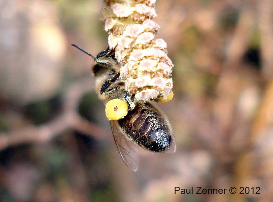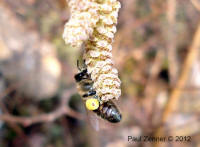 Honigbienen bereits am 01. März, bei 18 Grad, eine Helle Erdhummel-, eine dunkle