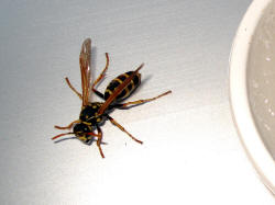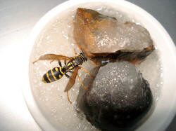 An der bereit gestellten Zuckerschale mit Bienenfutterteig erschien die erste Feldwespenkönigin, um sich nach der langen Winterruhe mit etwas Energie einzudecken.