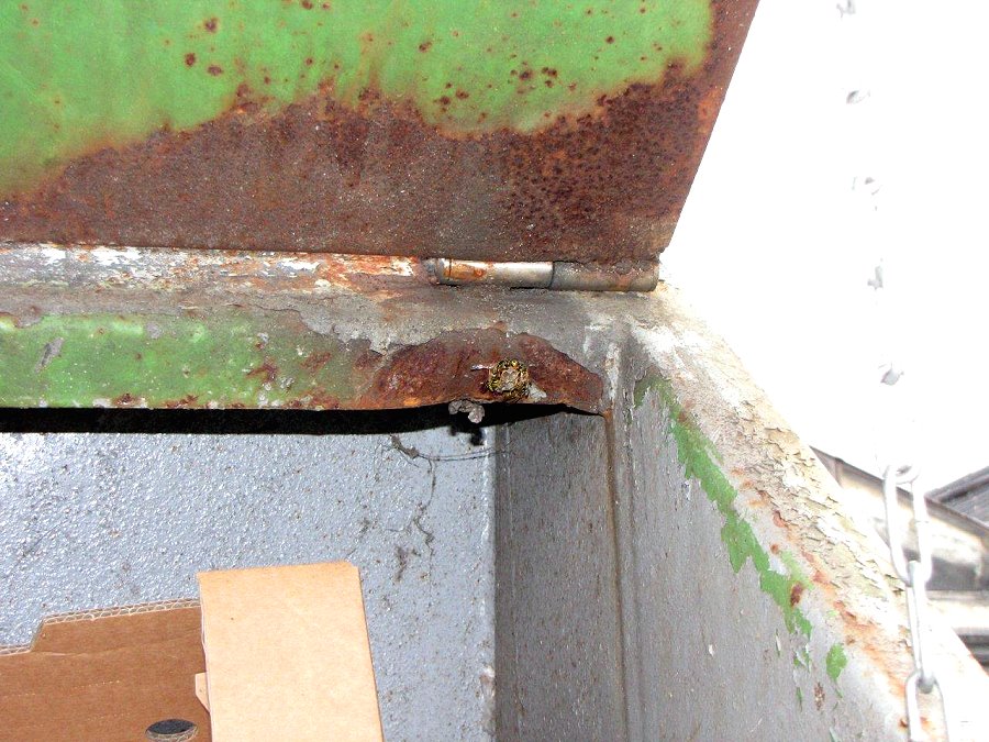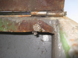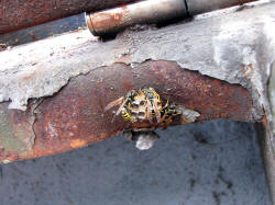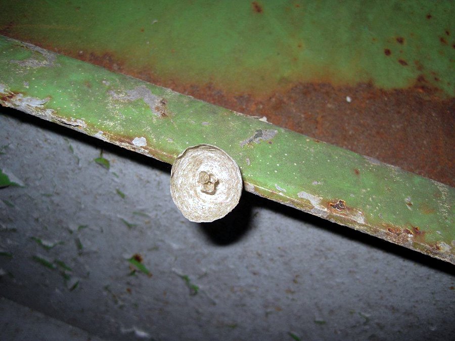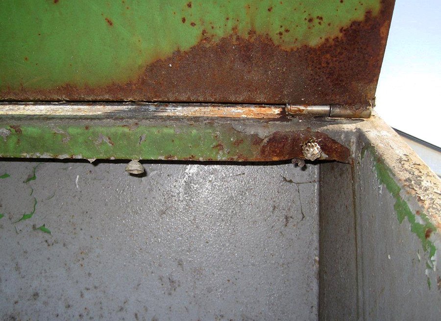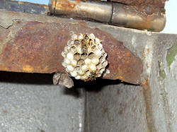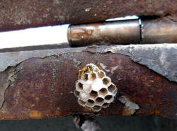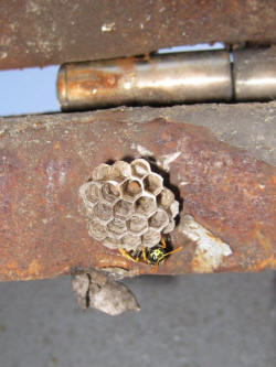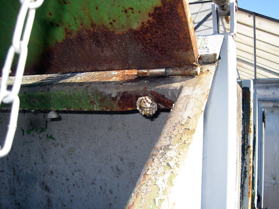 Feldwespennest am Klappdeckel des Papiercontainers. Das ist eben der Vorteil