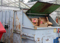 Container geworfen und die Papierpresse angeschaltet. Dann, einmal im Monat, der