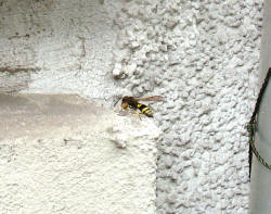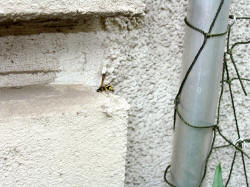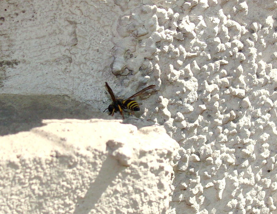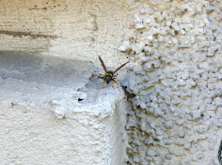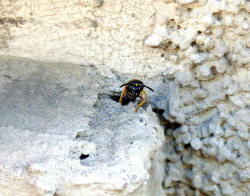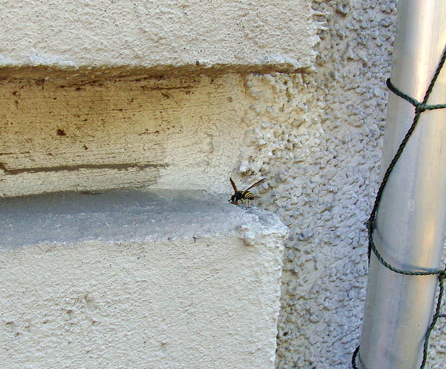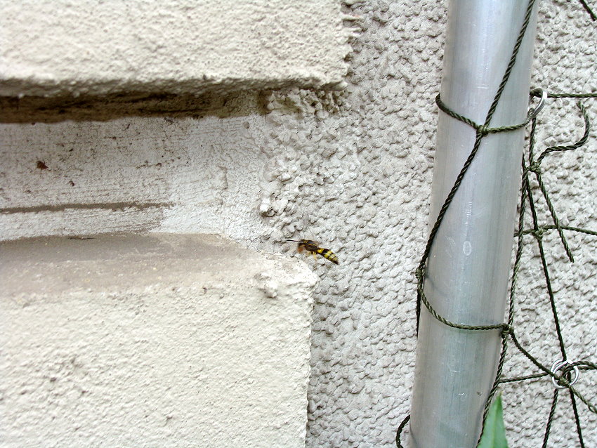 Schulze, hat sich eine Lehmwespe angesiedelt und baut dort ihre Brutkammer aus.