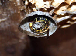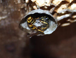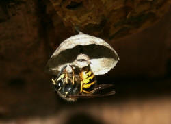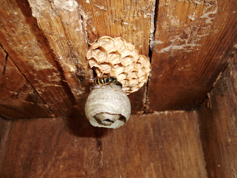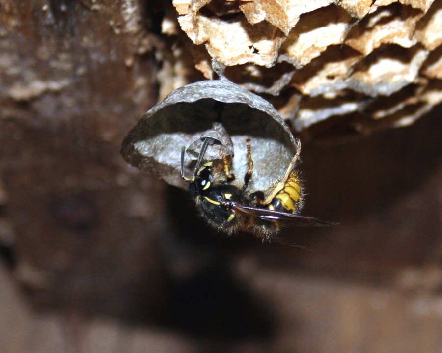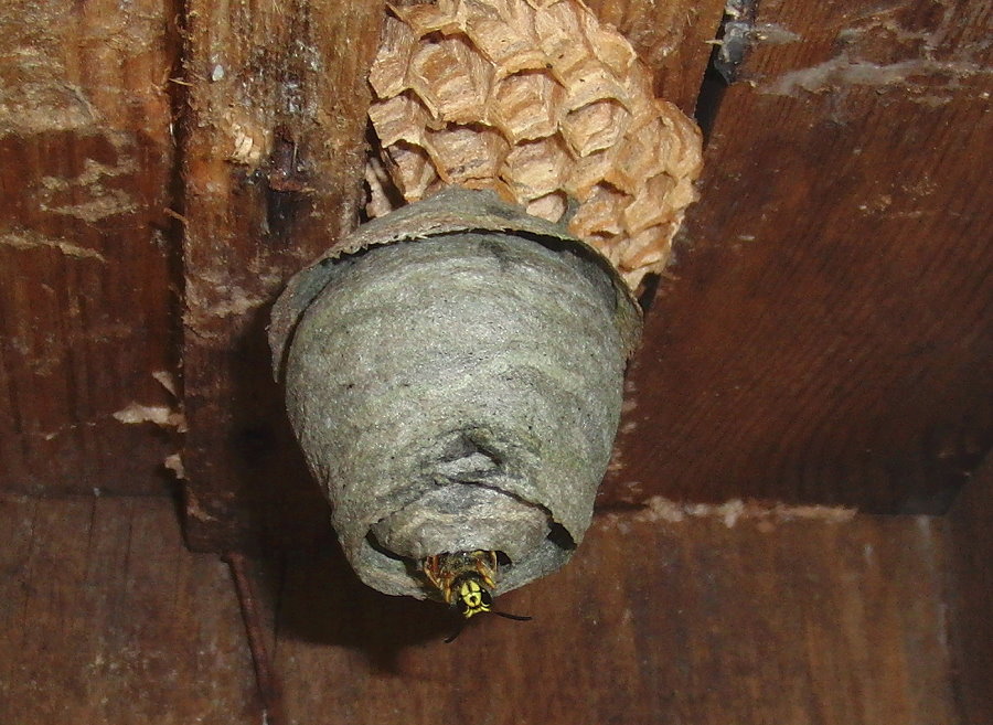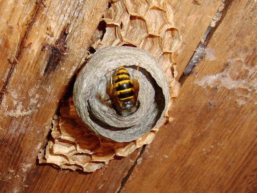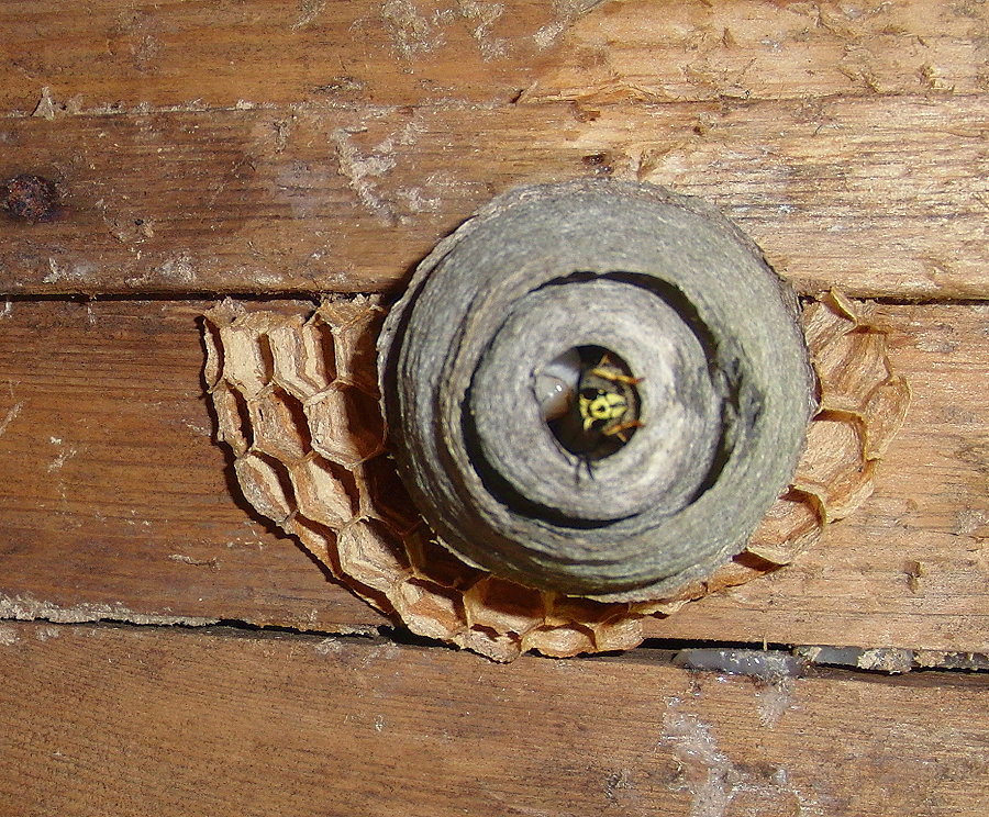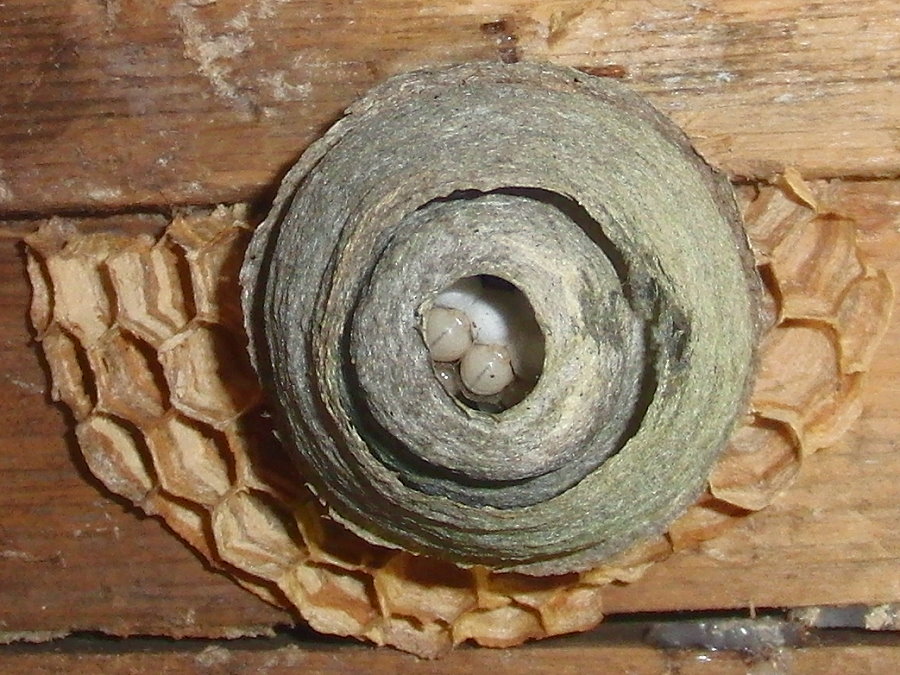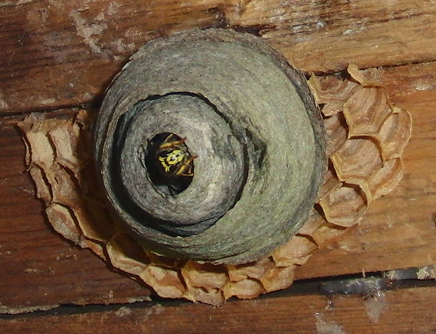 Hornissenwabe das Gründungsnest einer Sächsischen Wespe.