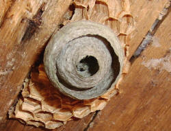 Nistkasten und kann die Wespenkönigin beim Erweitern der Nesthülle beobachten.