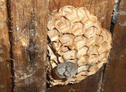 wurde ein altes Stück Hornissenwabe an der Decke des Nistkastens geklebt.
