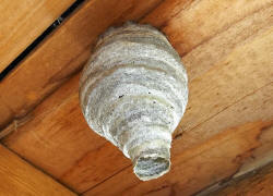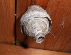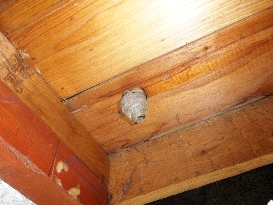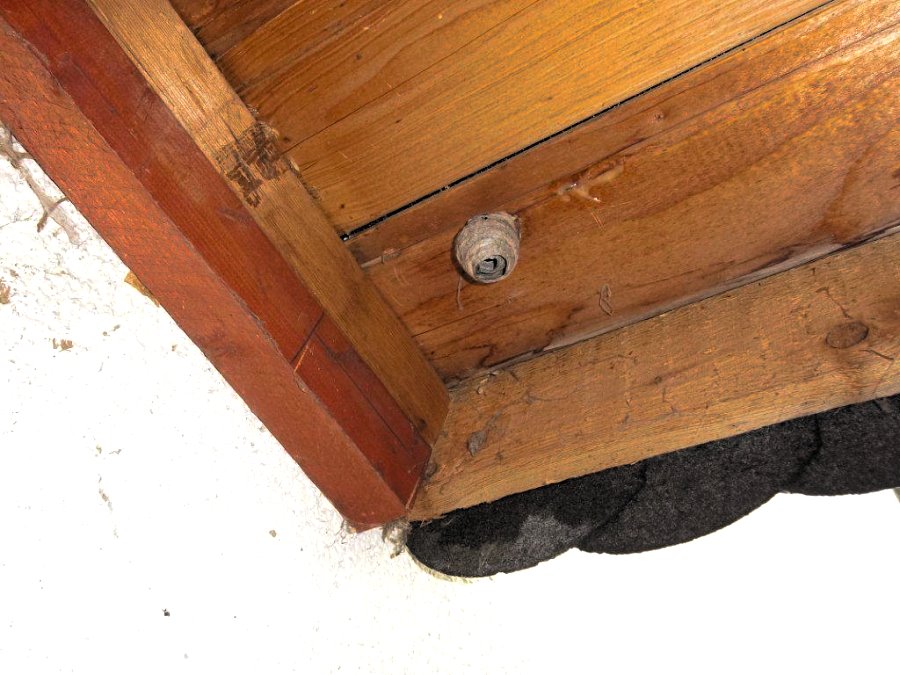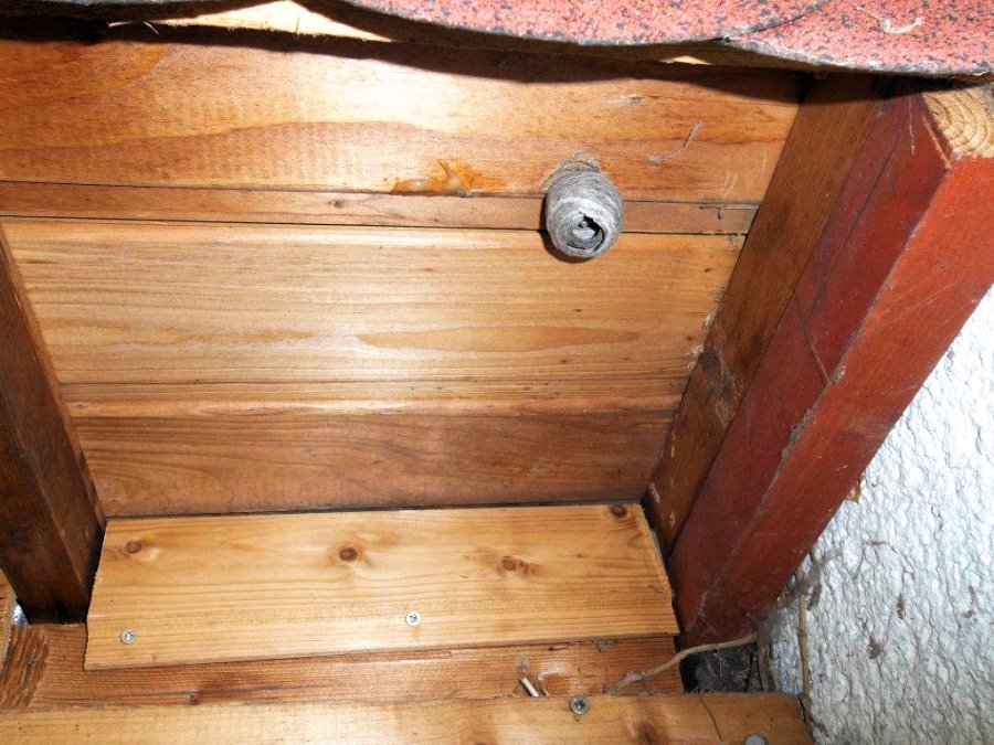 Thomas ein wenig Honig an den Dachüberstand, direkt neben die kleine Nestkugel