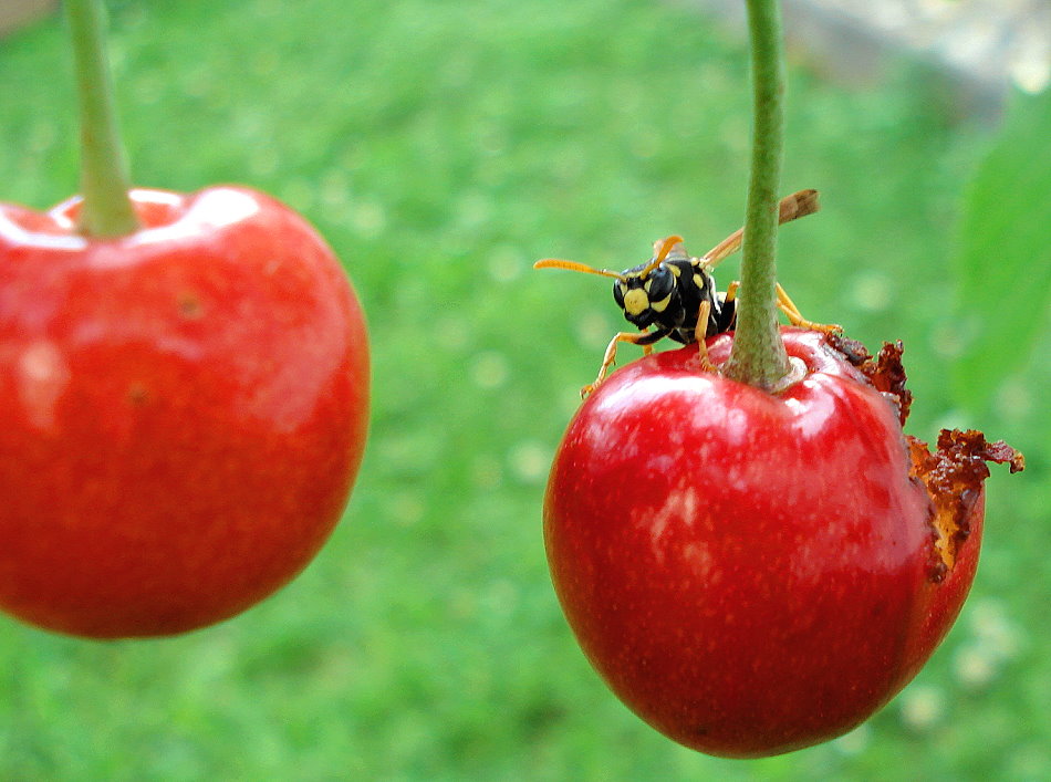 kann man erkennen, dass eine Feldwespe ein grünliches Futterpaket ind