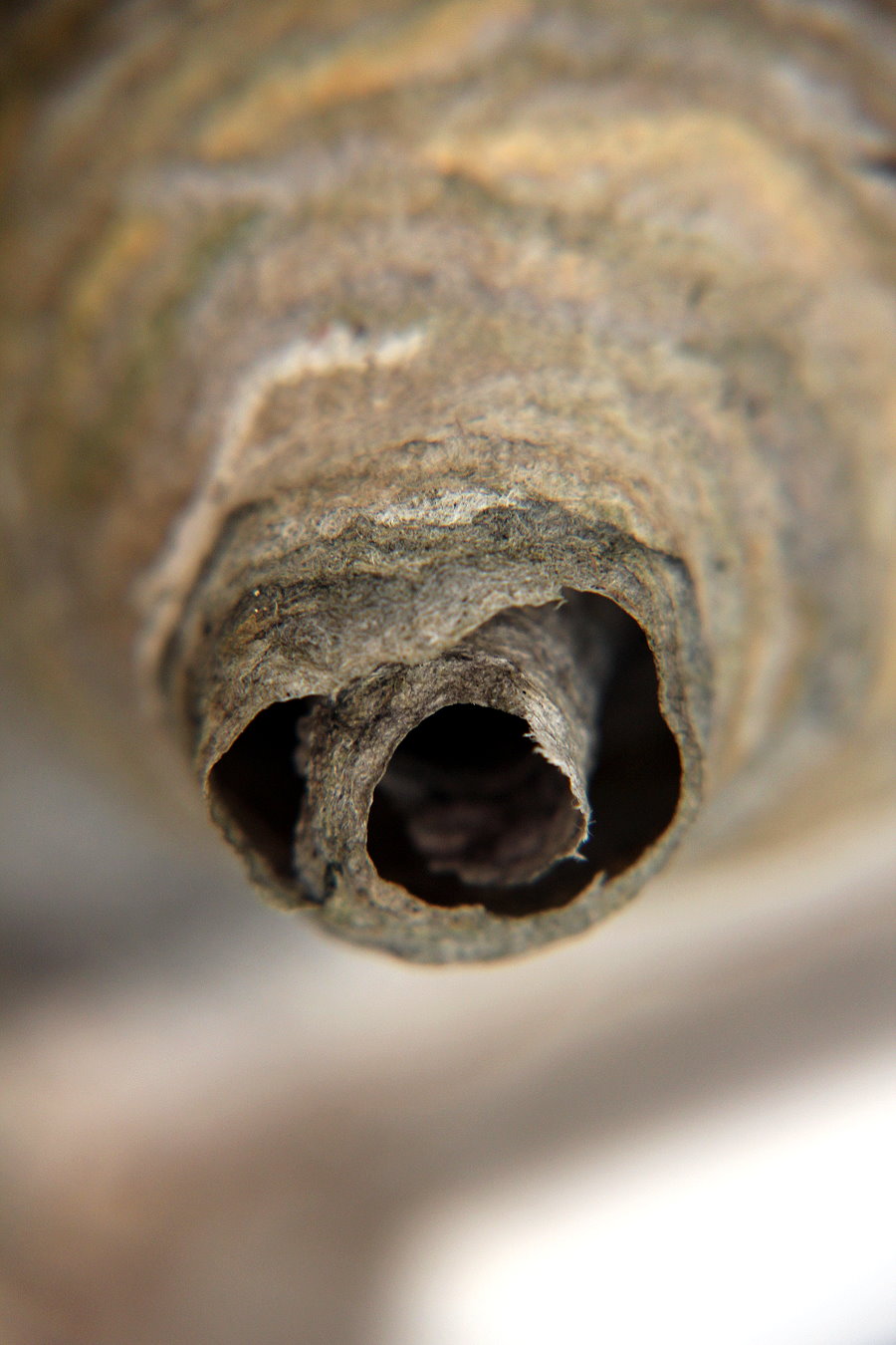 abgetragenen Außenhülle erscheinen die Waben im Nestinneren nicht mehr