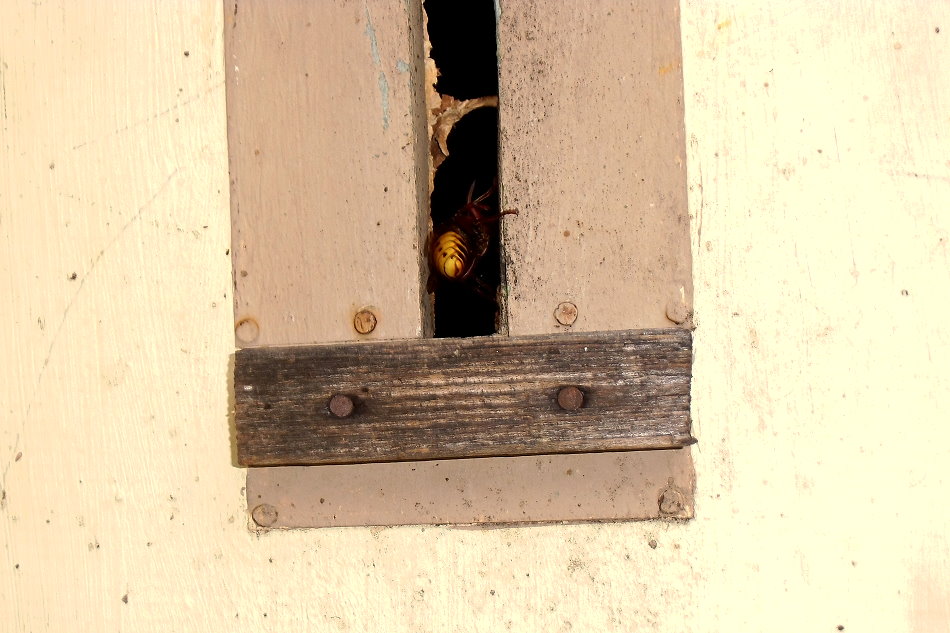 Hornisse stammt, öffne ich nach ein paar Minuten vorsichtig den Hornissenkasten.