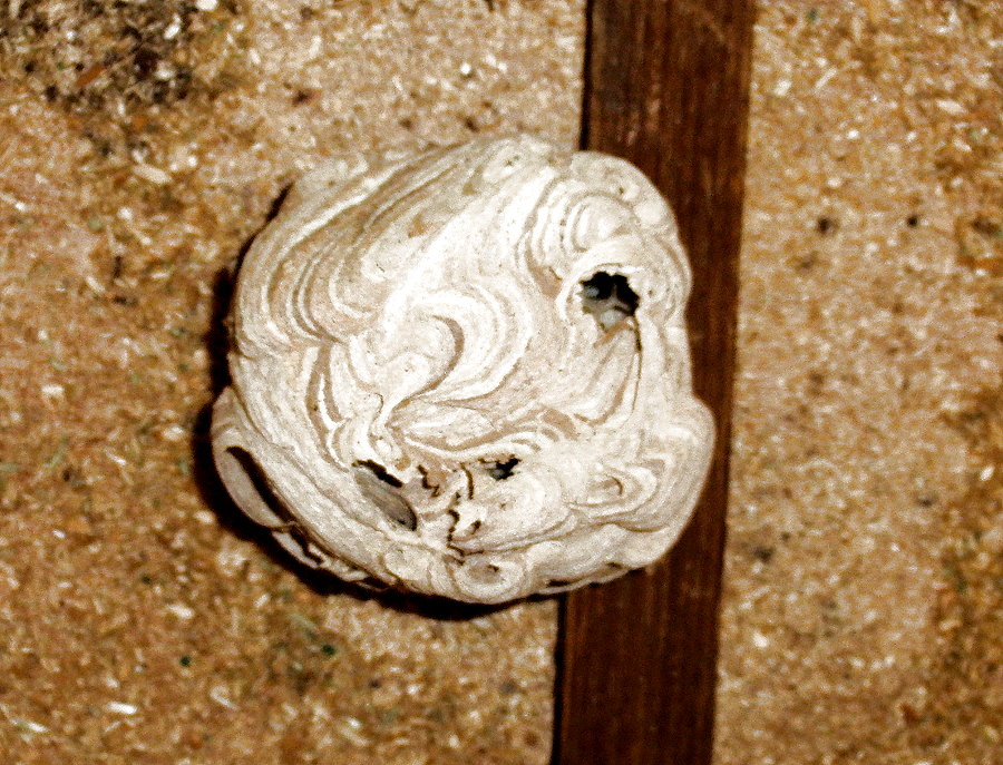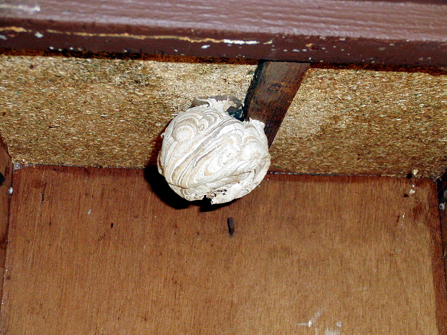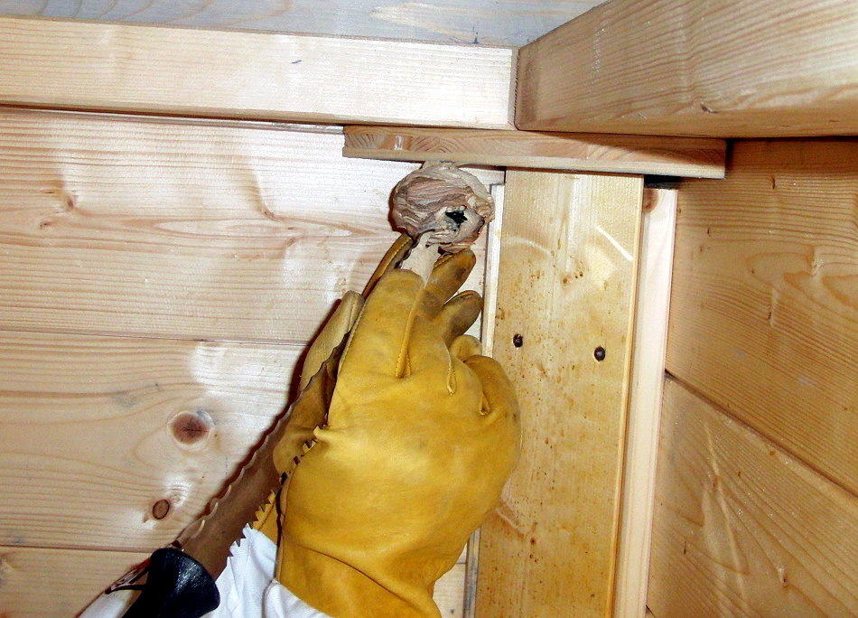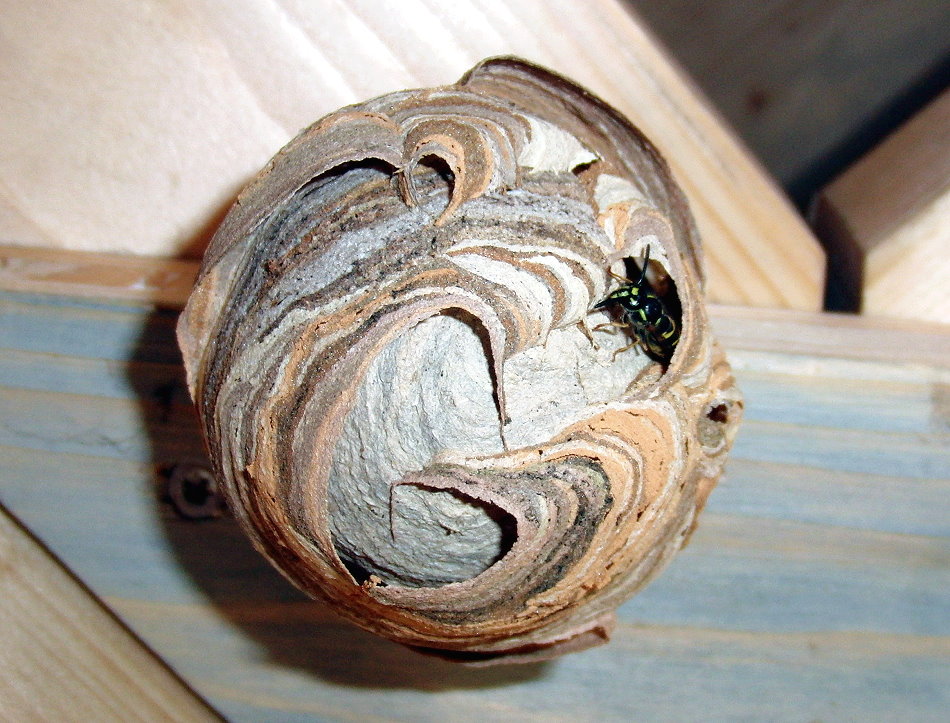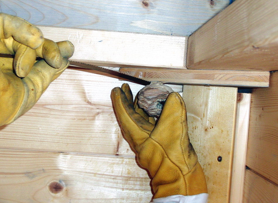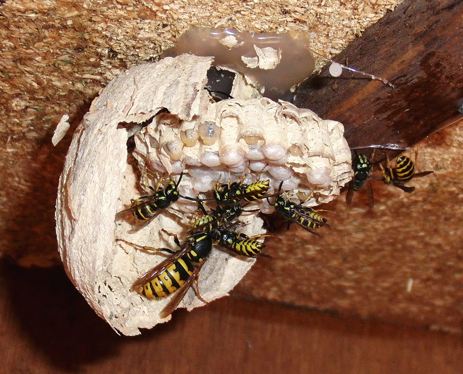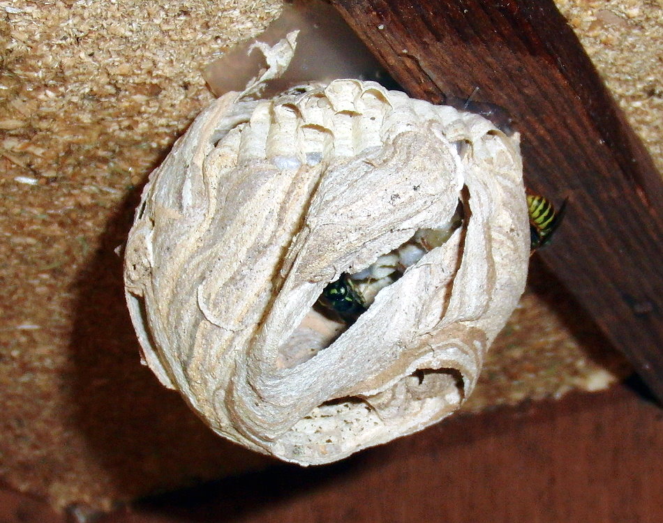Wie sollen hier die paar Wespen die kleine Wabe am Dach des