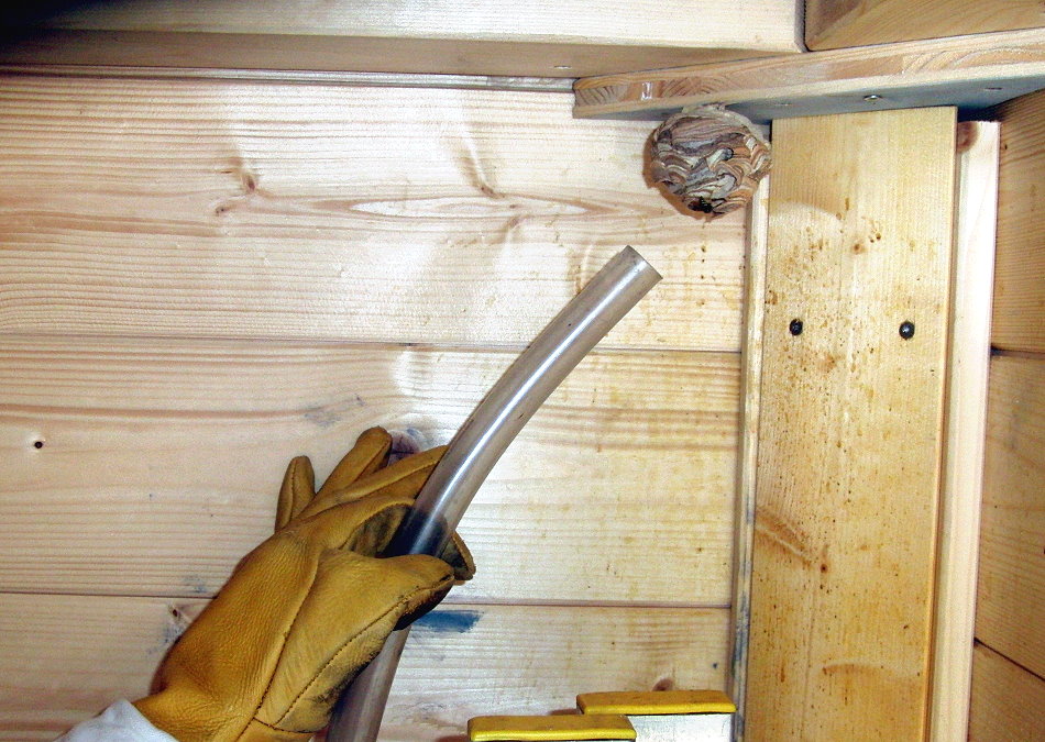 Verteidigungsverhalten der Wespen zunutze. Der Schlauchanschluss wird