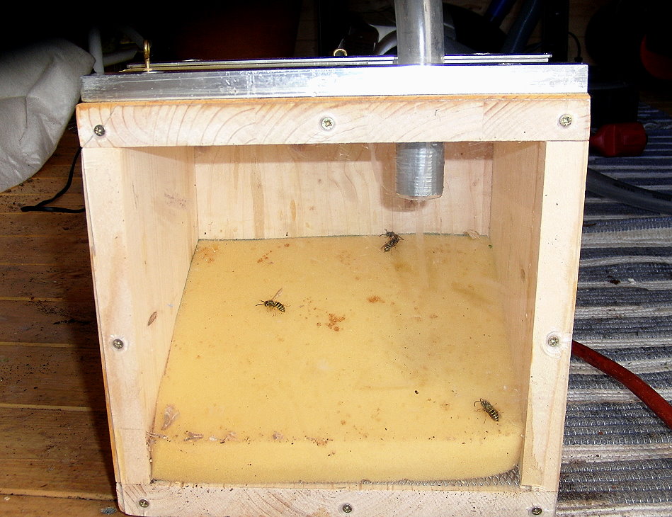 Ausführung: Eine kurze CO2-Dusche in die Fangbox. Die Wespen sind