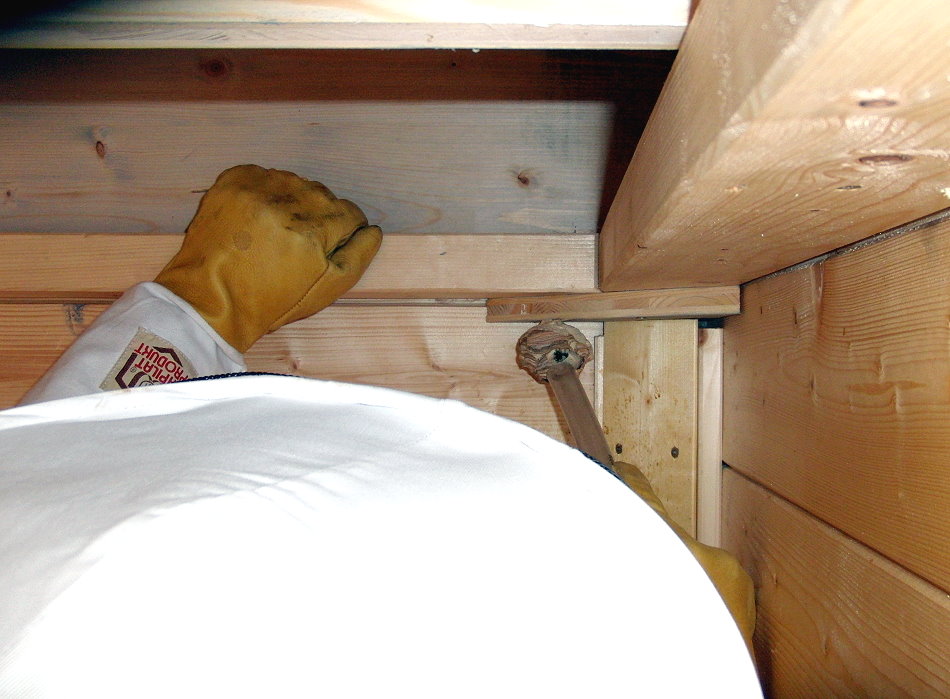 inspiziert das umgesiedelte Nest. Jetzt wird der Kasten verschlossen.