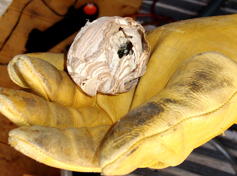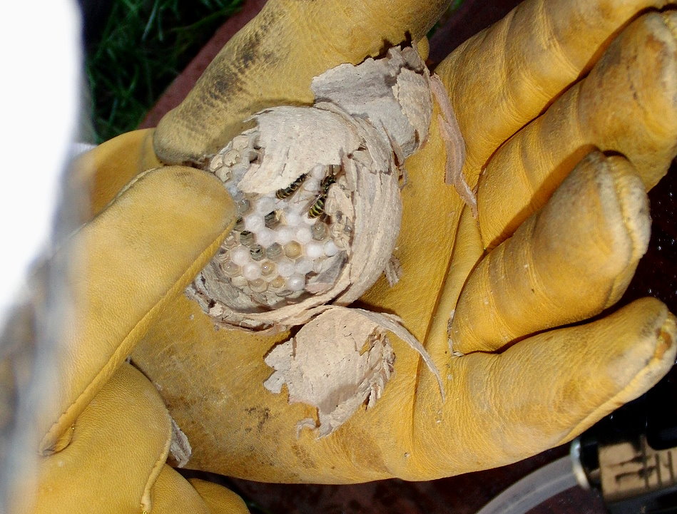 komplette Nesthülle und sauge die Wespen in die Fangbox.