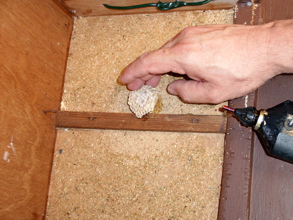 Nistkasten einkleben kann, zerbröselt die Nesthülle.