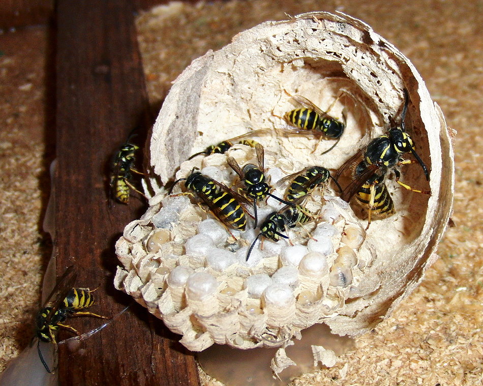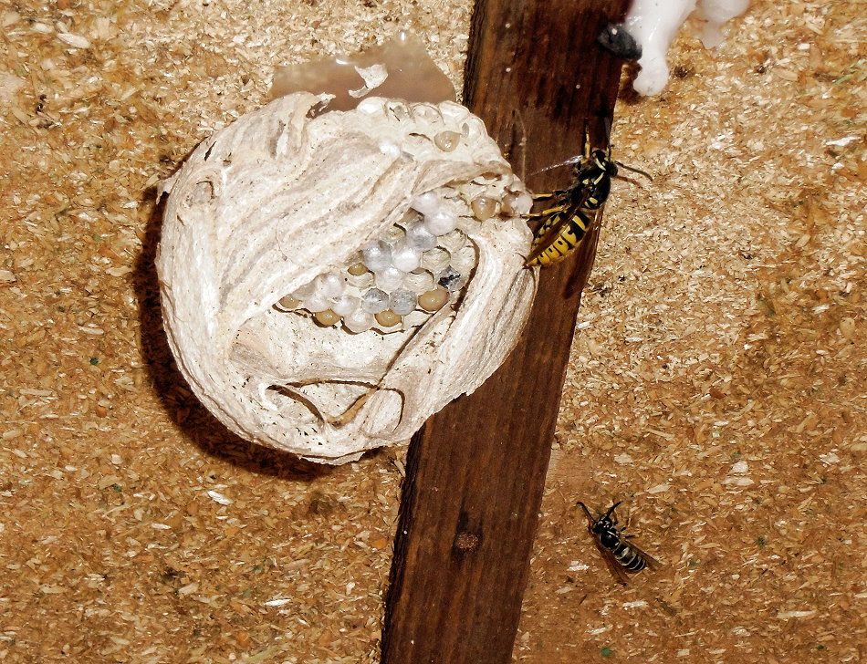 Schon beginnt das kleine Wespenvolk sich zu bewegen. Eine