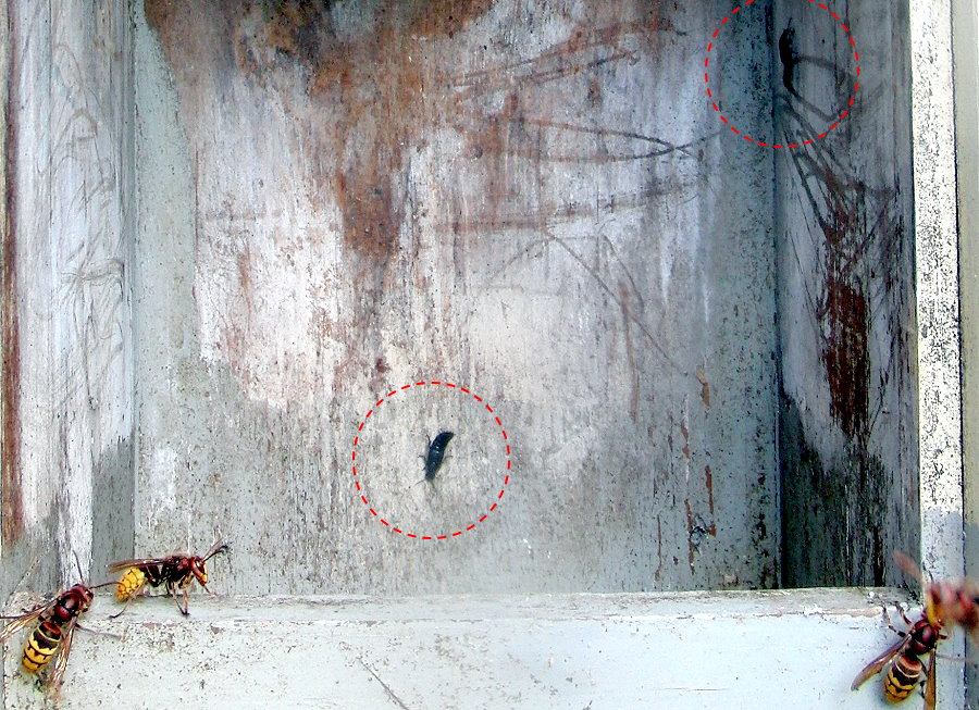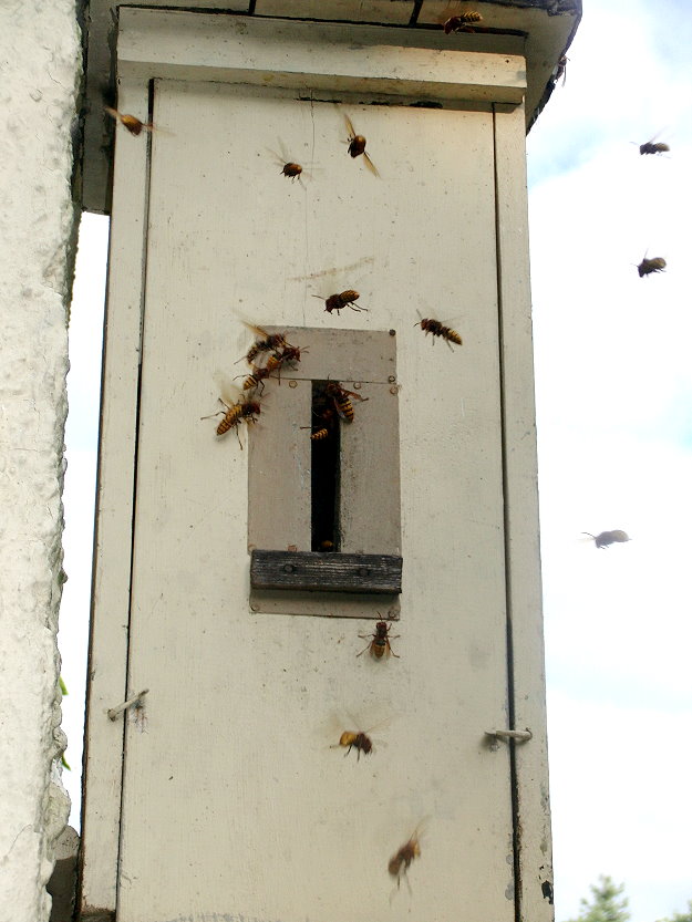 aus. Hornissen die durch die Lüftungsschlitze gelangten, wurden direkt