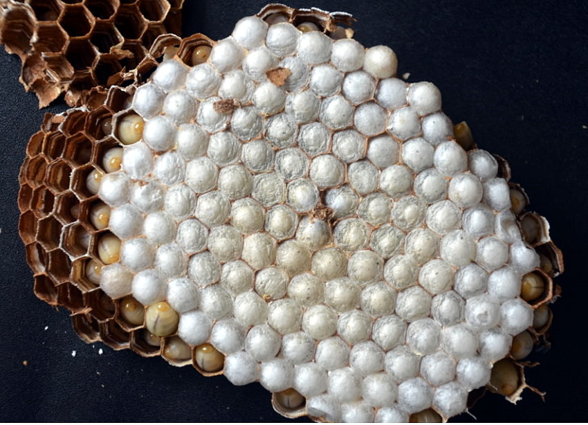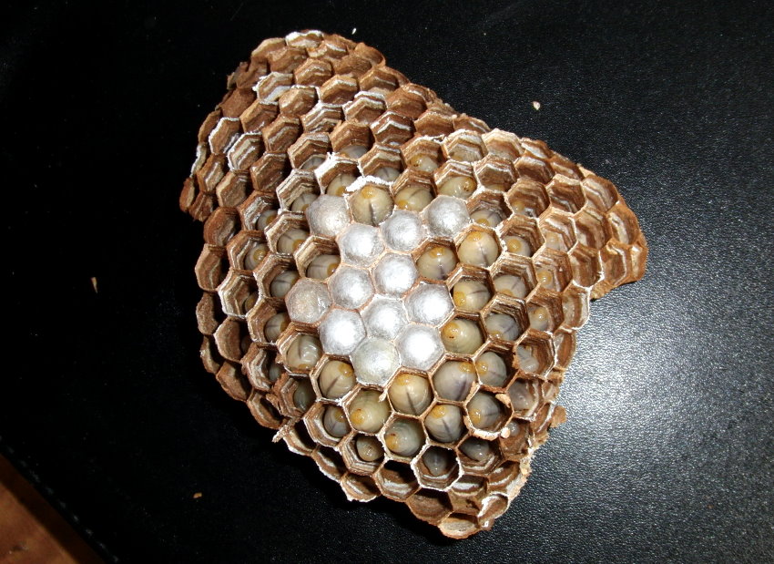 Lediglich vier Hornissen befanden sich auf der neu begonnenen Wabe.