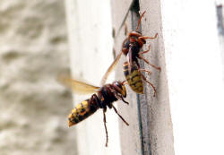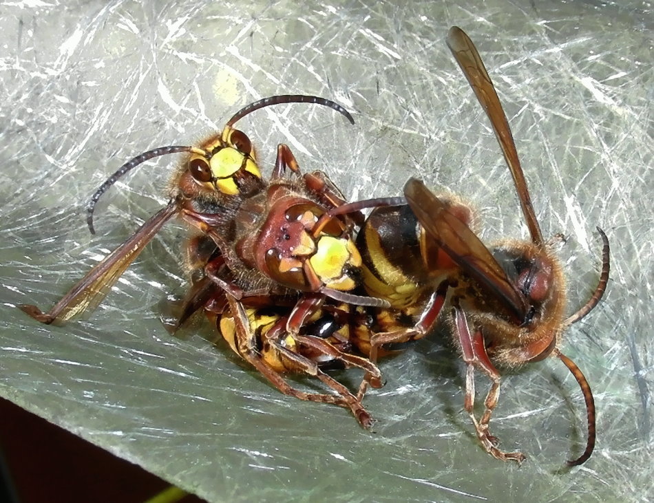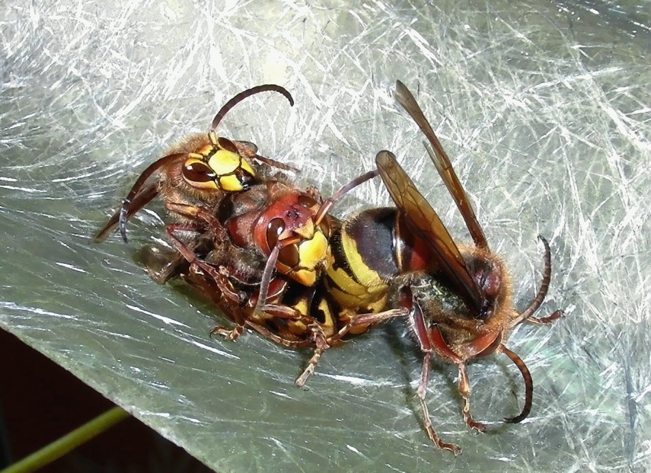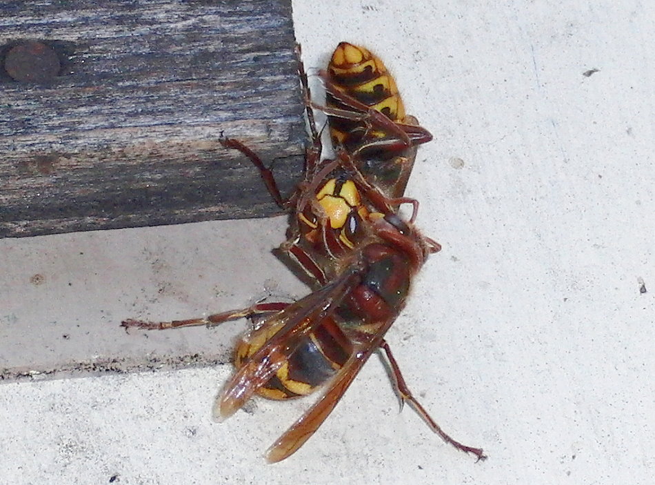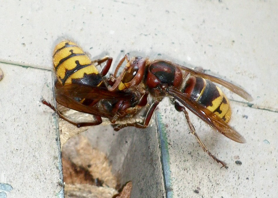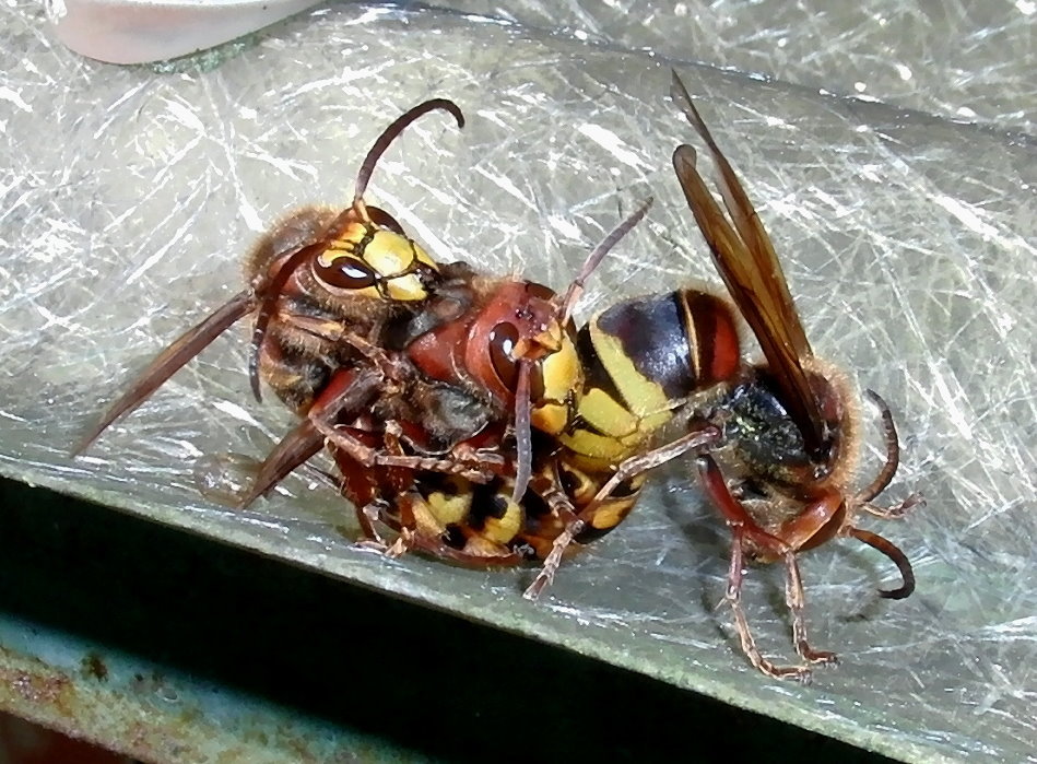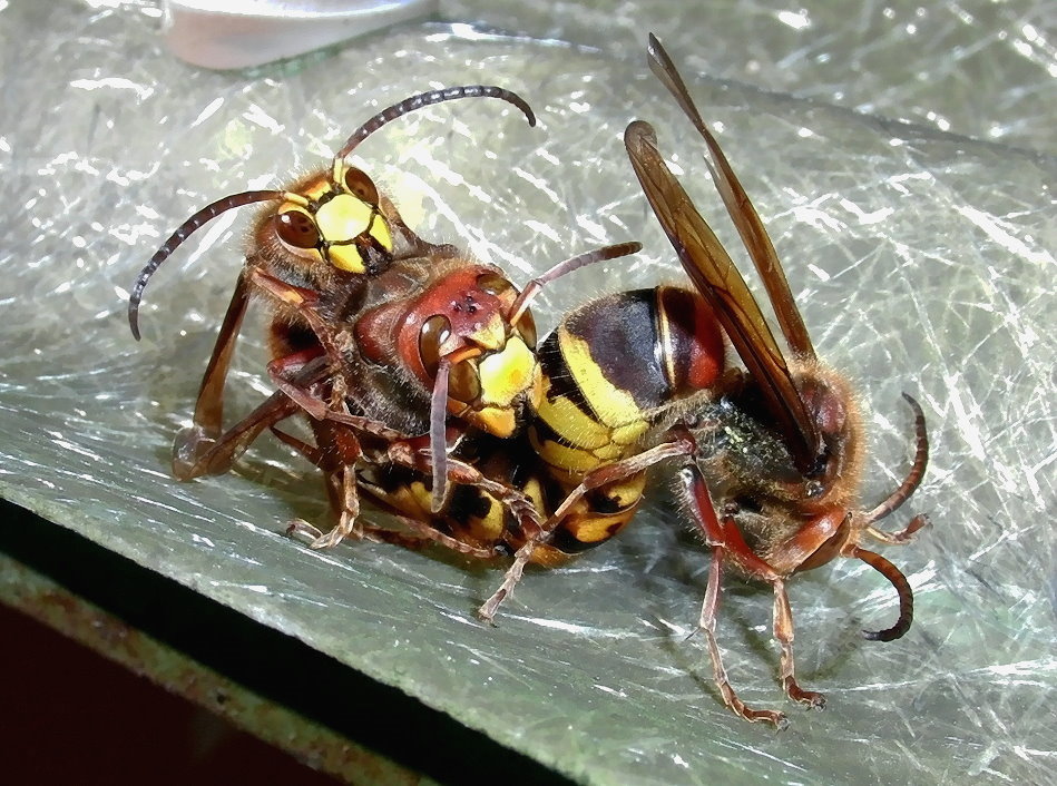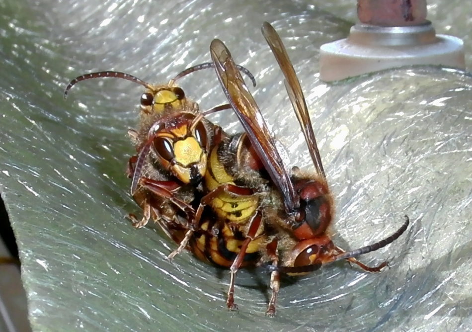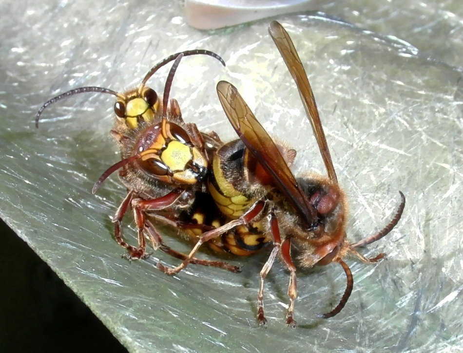 Hornissenkönigin, die mit ihrem "Bräutigam" nicht zimperlich umgeht.