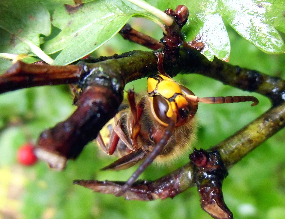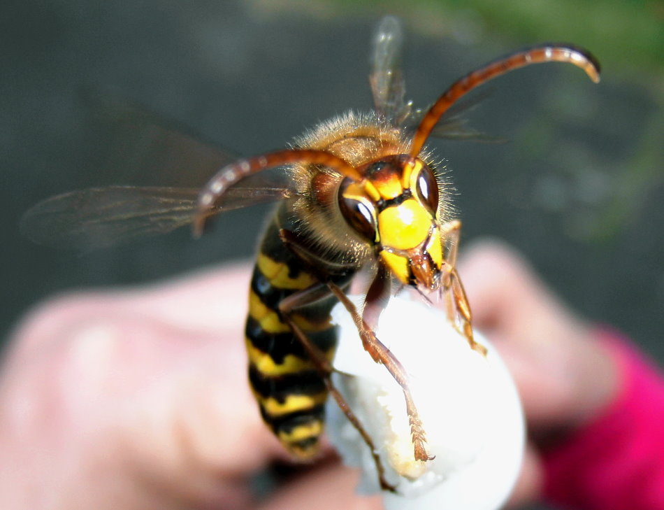 ich nun meinen Gesichtsschutz holen. Ständig fliegen mir Hornissen in