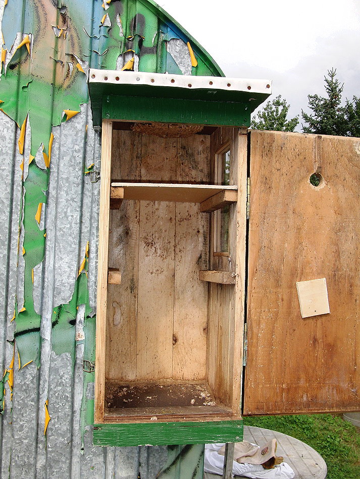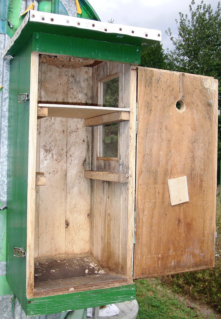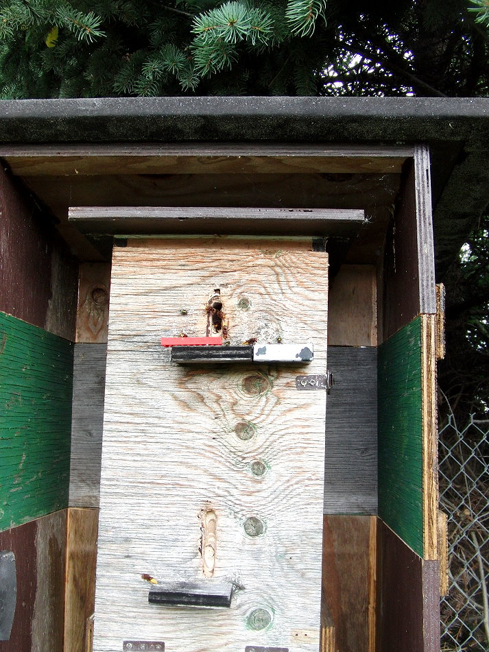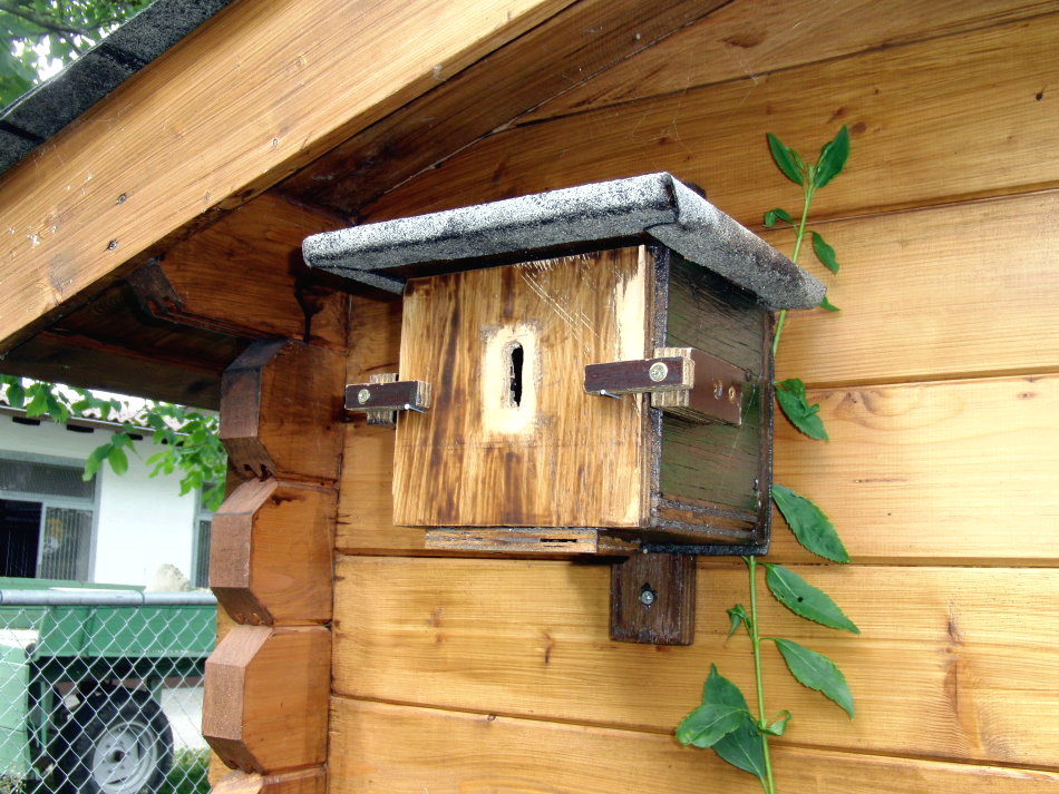 Holzbrett verkleinert und das untere Einflugloch verschlossen.
