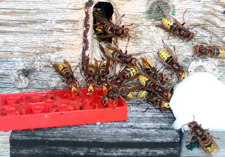 eine Hornissengründung zerstört. Da habe ich die Wasserschälchen gebaut.