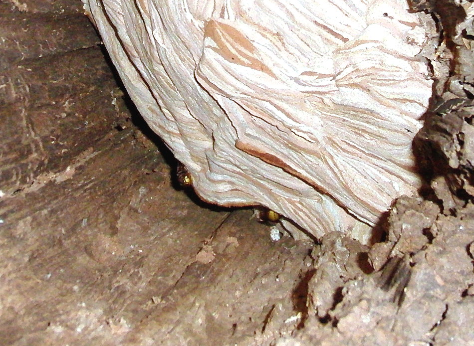die Baumaterial sammelten. Also konnte das Hornissennest nicht weit
