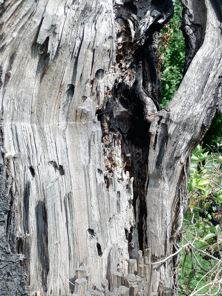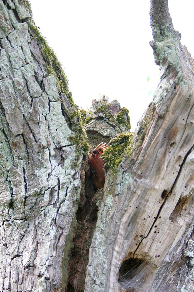 Die herausgebrochene Mitte des Baumes ist hohl. Dieser Hohlraum wird von