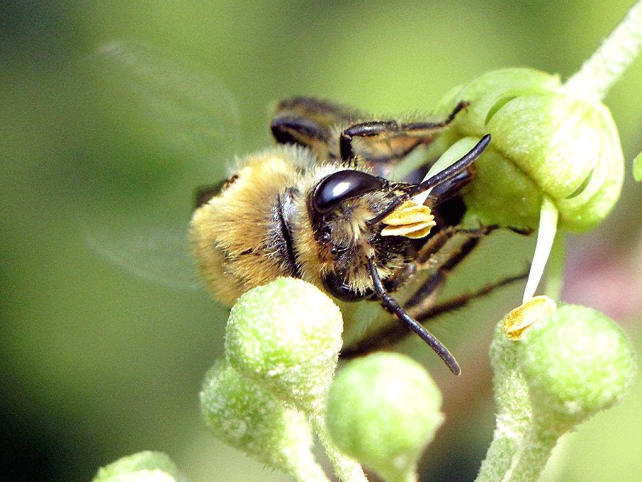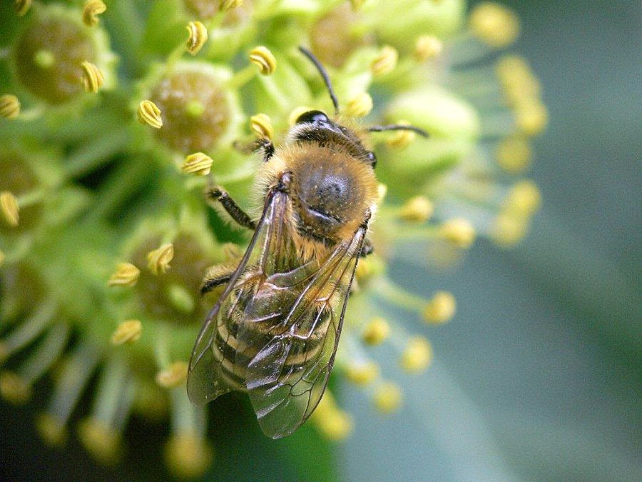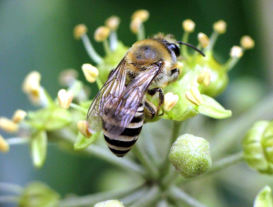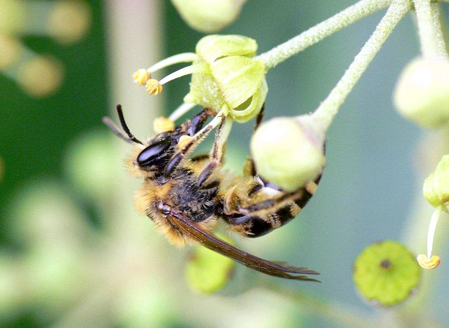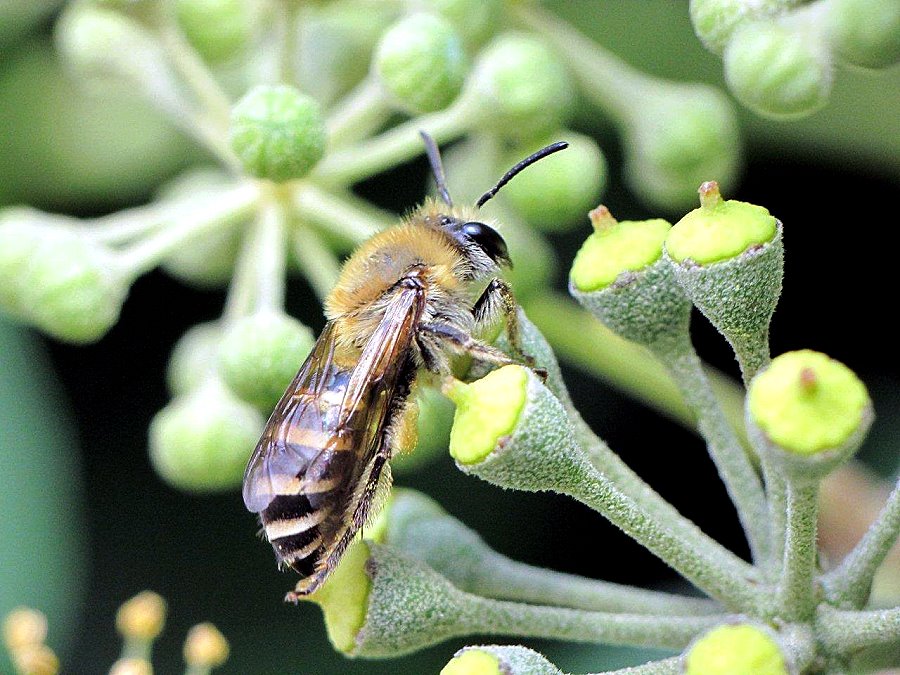 Speziell zur Efeublüte erscheint die Efeu-Seidenbiene