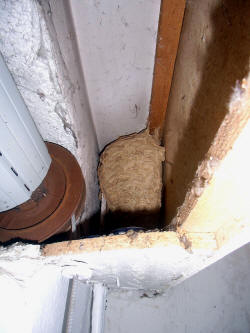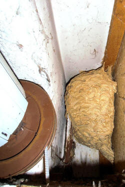 Nest der gemeinen Wespe in einem Rollladenkasten entdeckt.