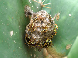 Kakteenkolonie entdeckte Paul ein Nest der Heide-Feldwespe (Polistes