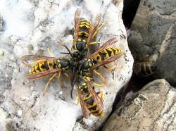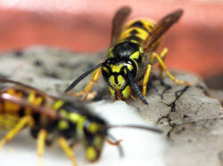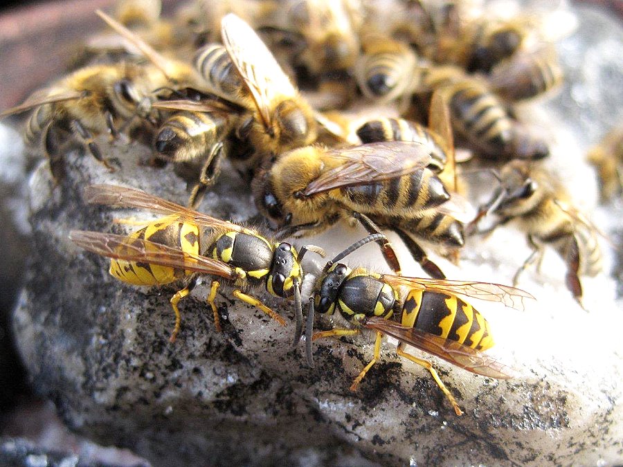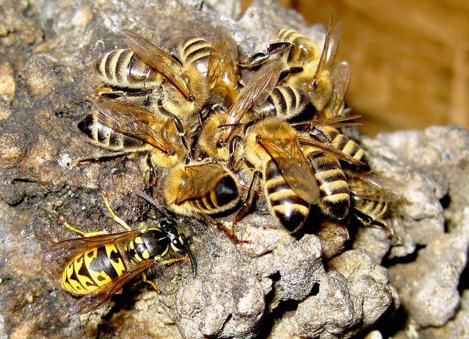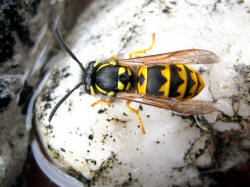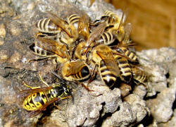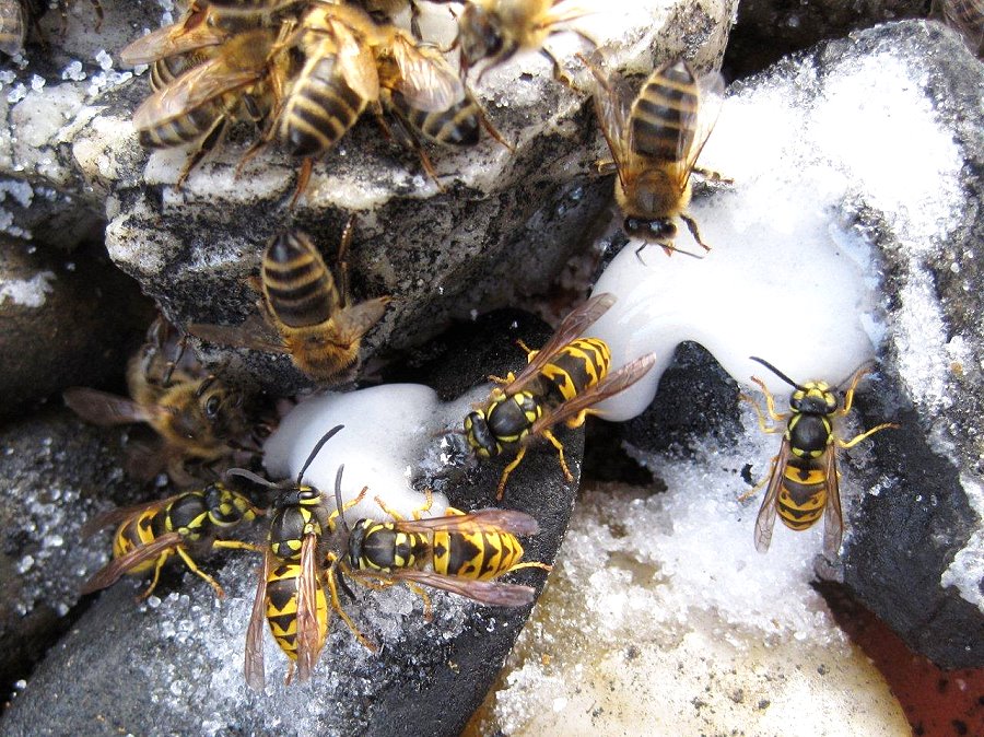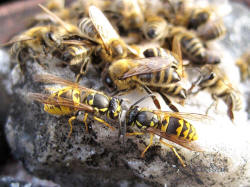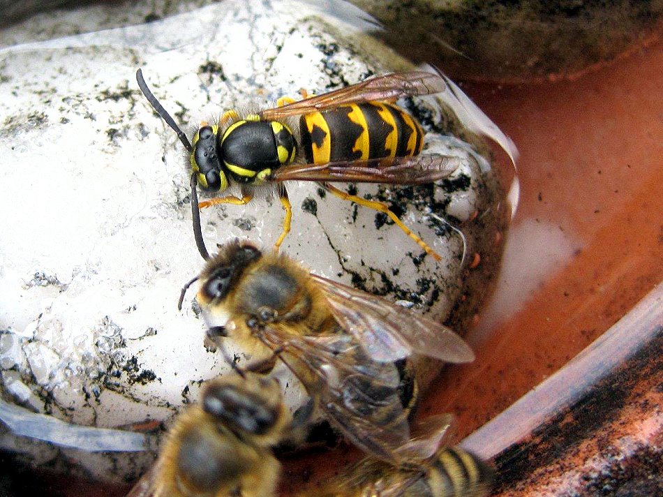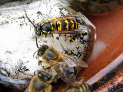 der Deutschen Wespe am Bienenfutterteig ein.