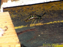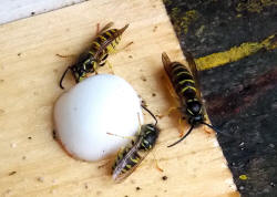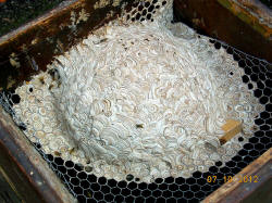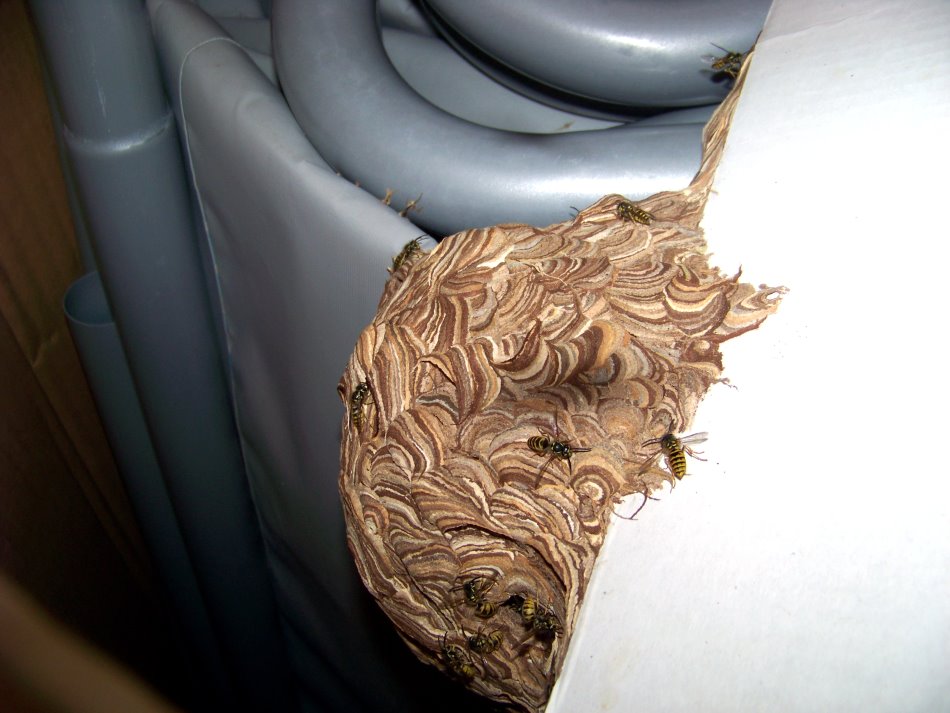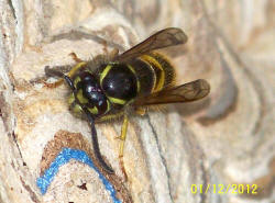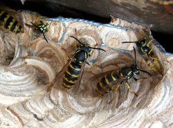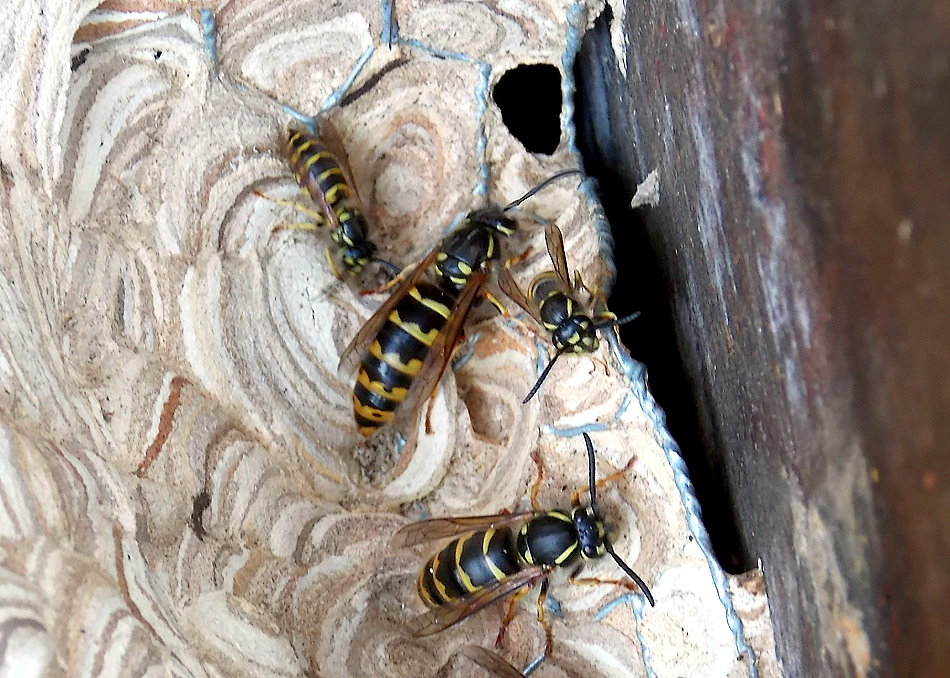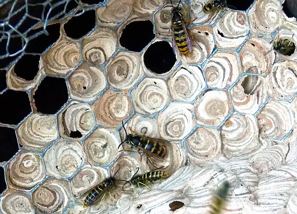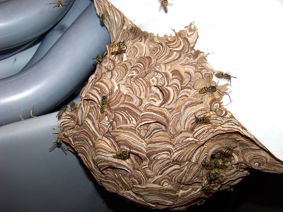 Auf der Nesthülle des prächtig entwickelten Nestes der gemeinen Wespe