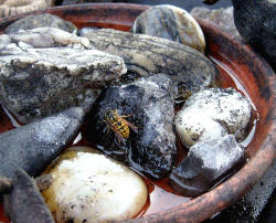 unbeweglich. Die vielen Honigbienen, welche im November noch die Schale besuchten,