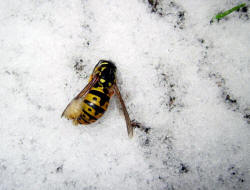 Wespenkönigin im Schnee. Sie wurde vermutlich von einem Auto angefahren.