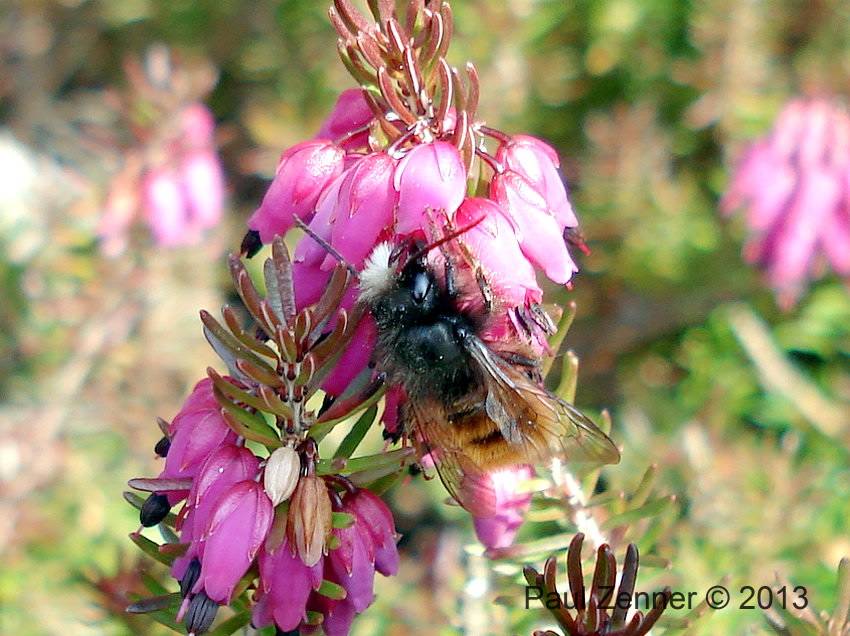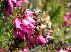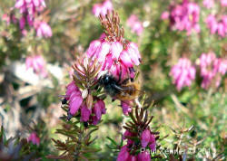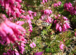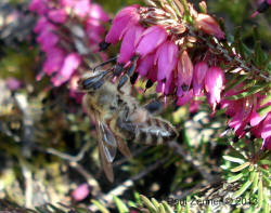 Honigbienen an der Winterheide seines Gartens beobachten können.