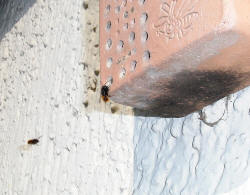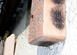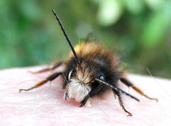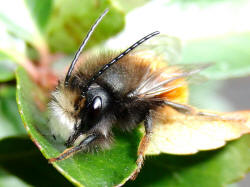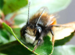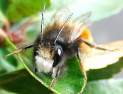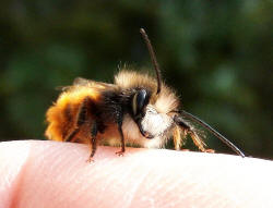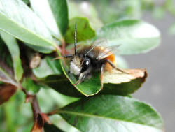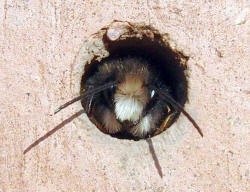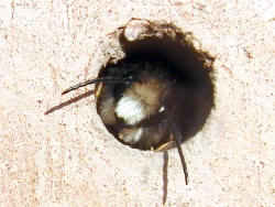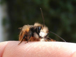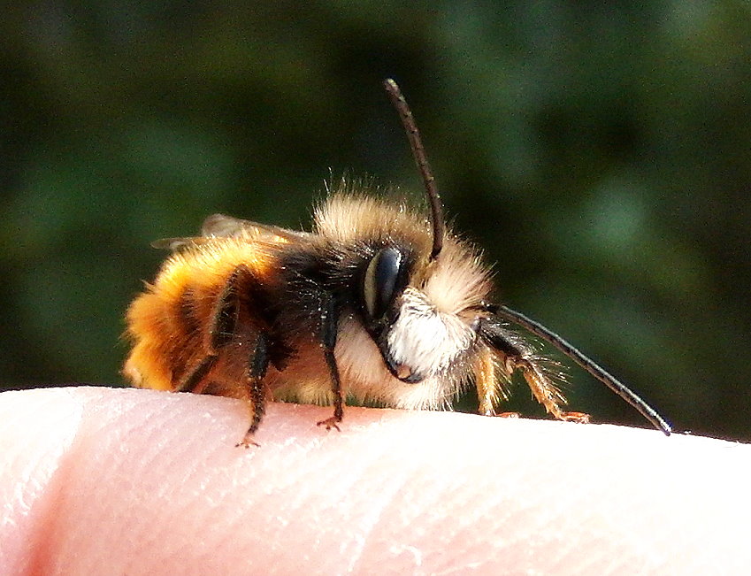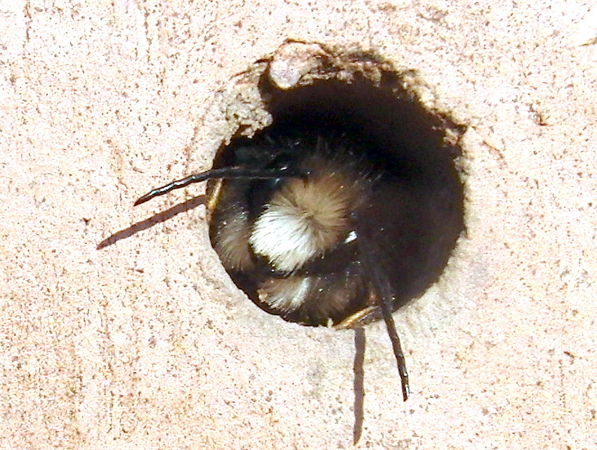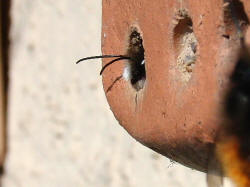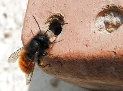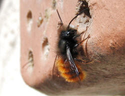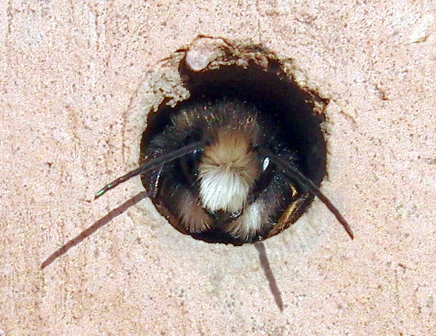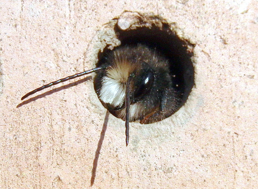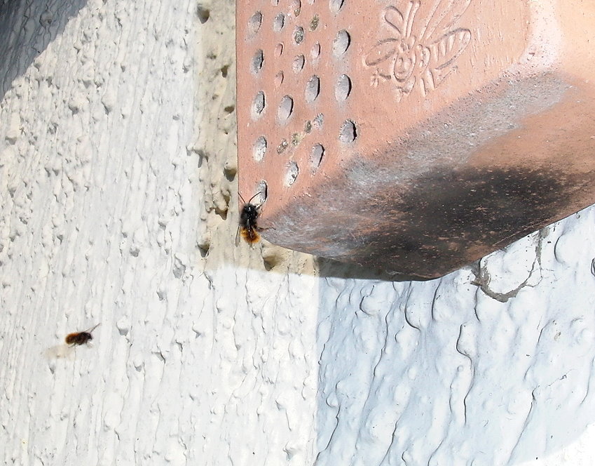ersten Mauerbienenmännchen an der Wildbienennisthilfe.