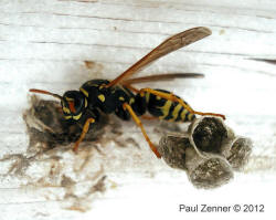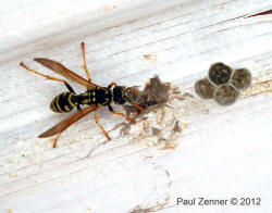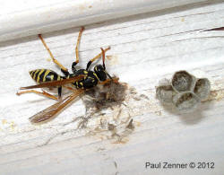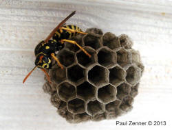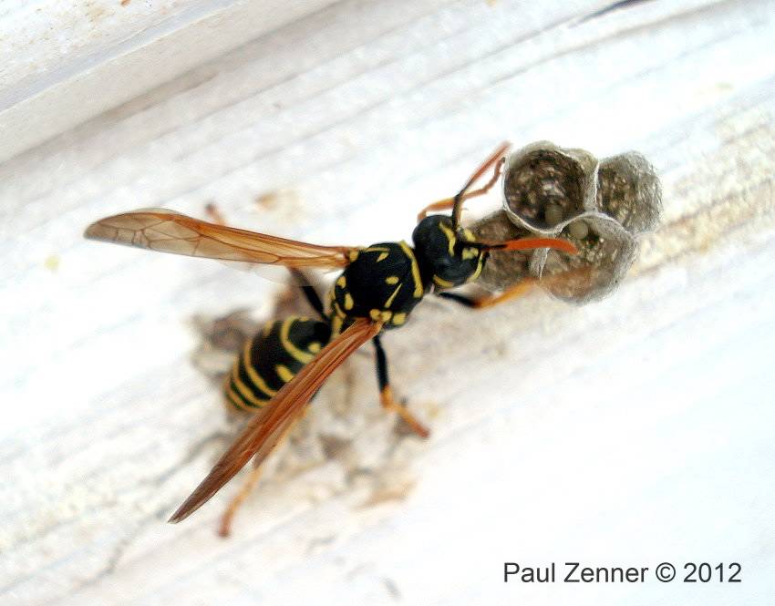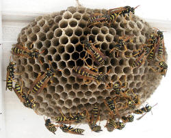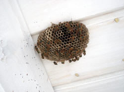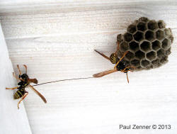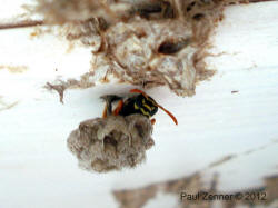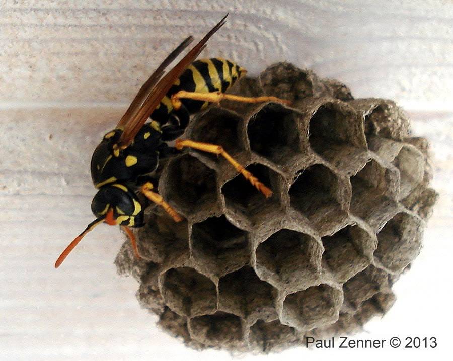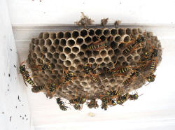 mehrere Feldwespennester an der Holzdecke des Rastplatzes gegründet werden. Paul