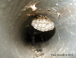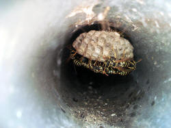 Feldwespennest im Eisenrohr ist gewachsen.