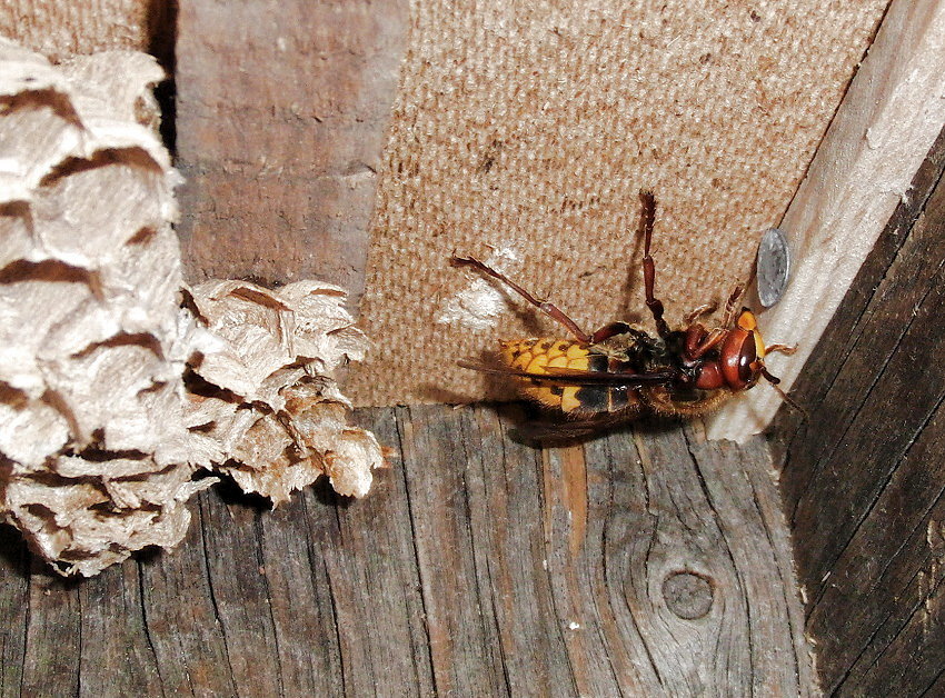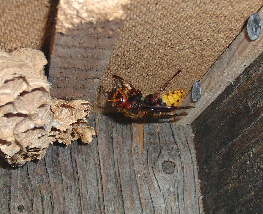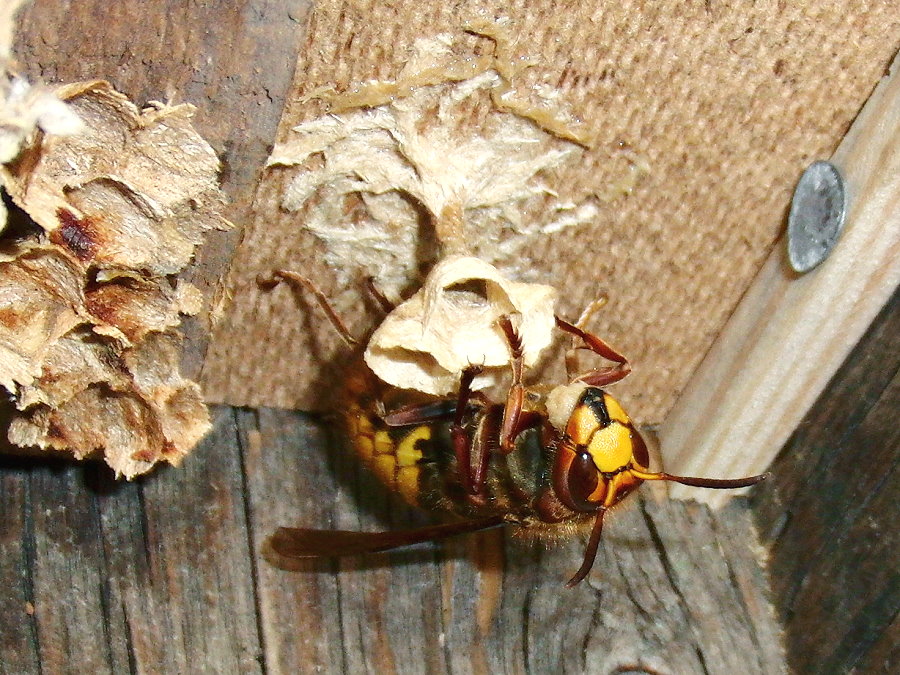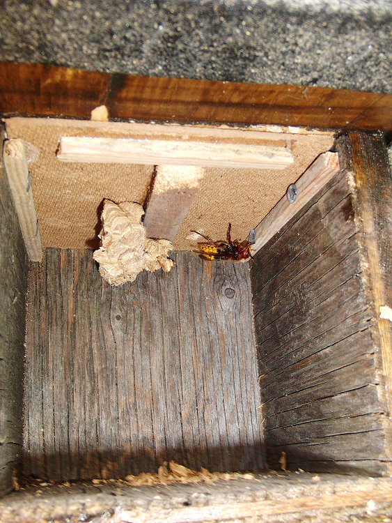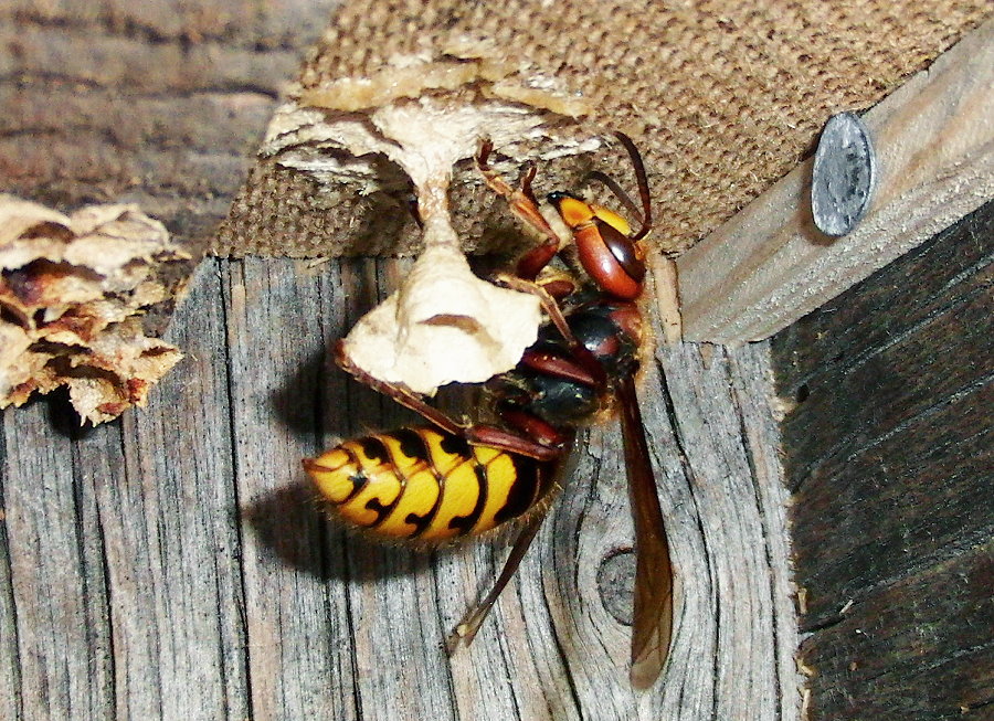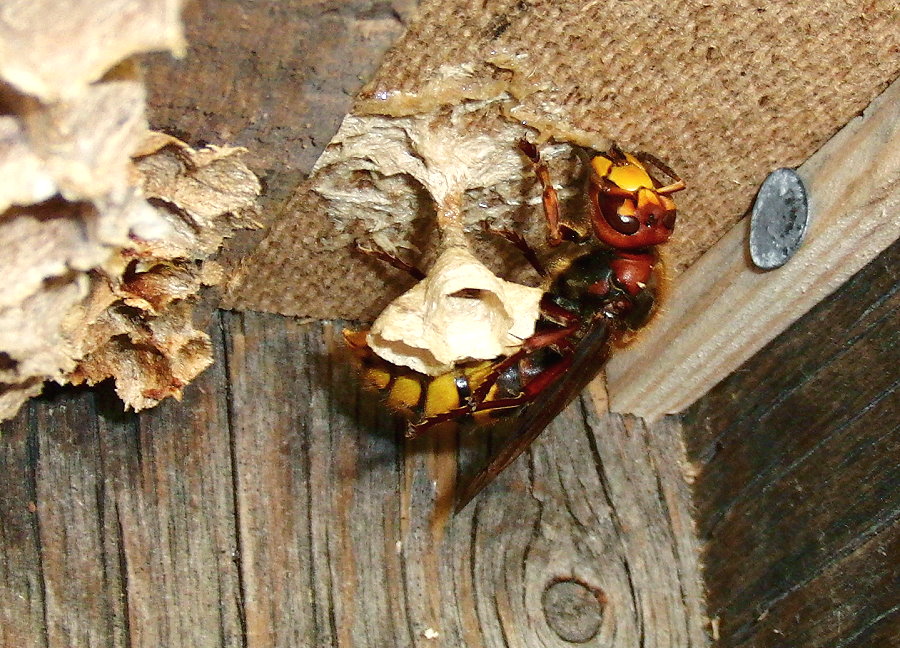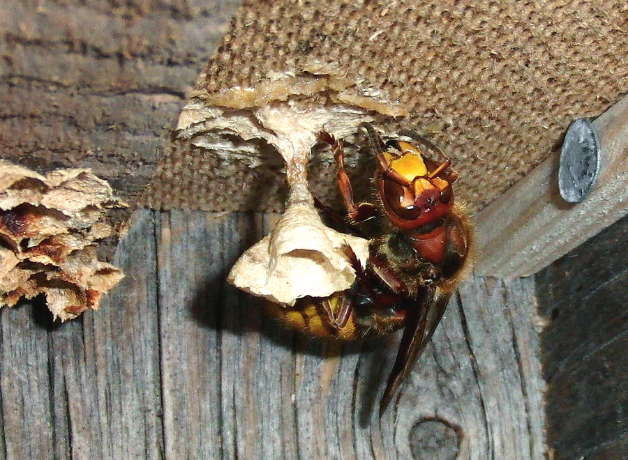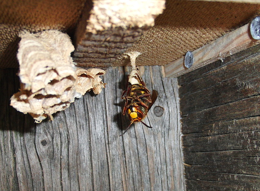 die Hornisse etwas zu groß - eine neue Königin auf dem Nest ...