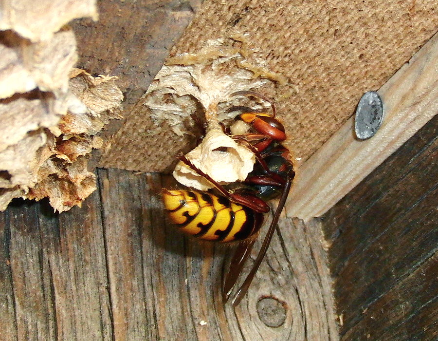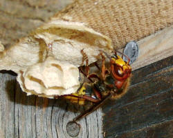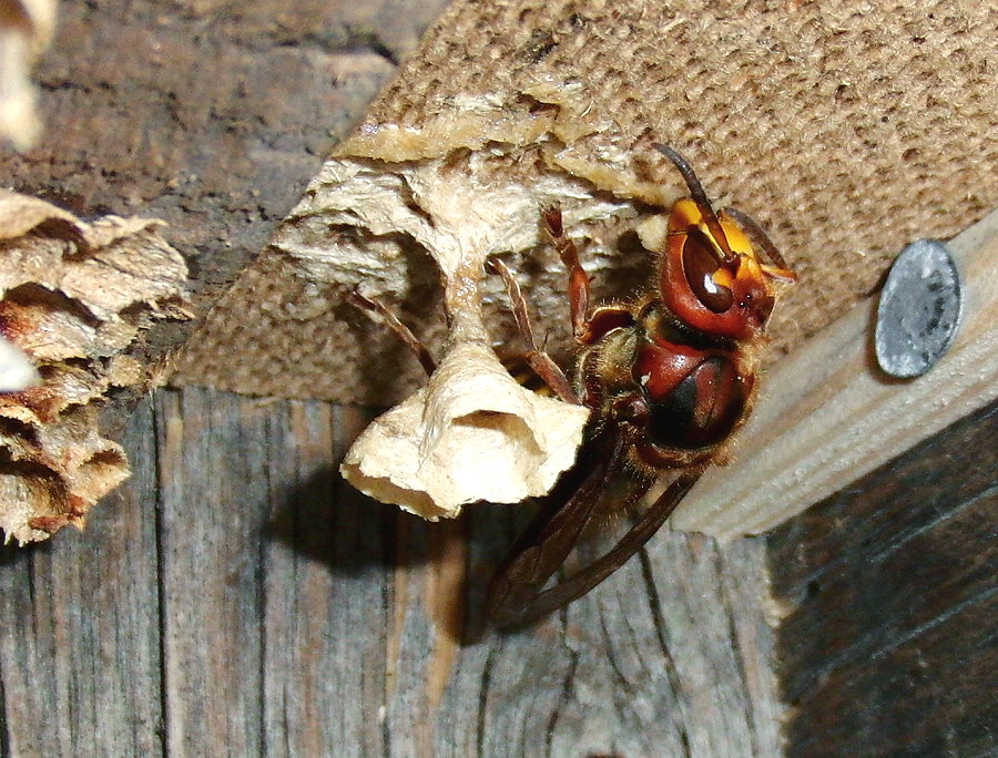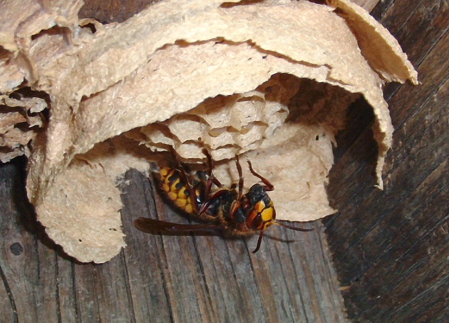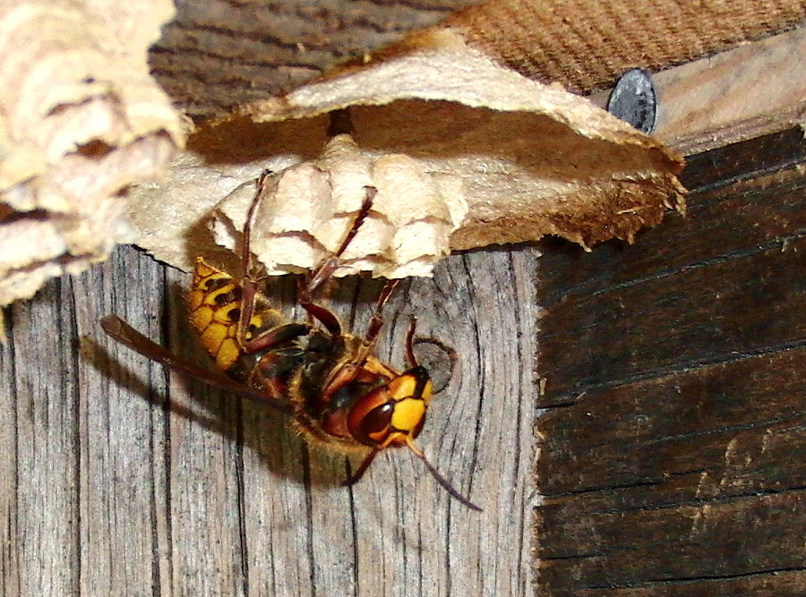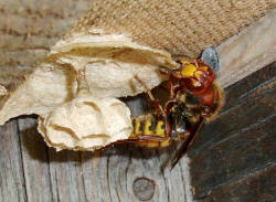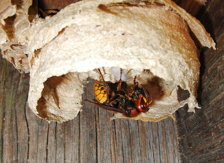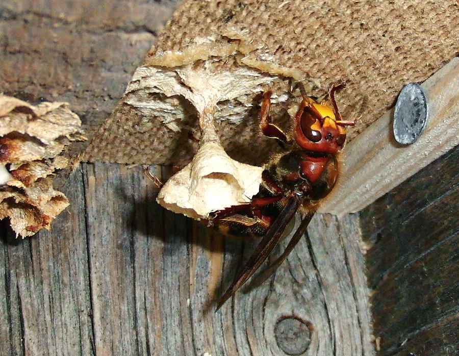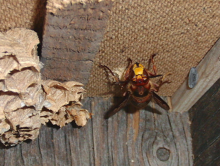 die Hornisse etwas zu groß - eine neue Königin auf dem Nest ...