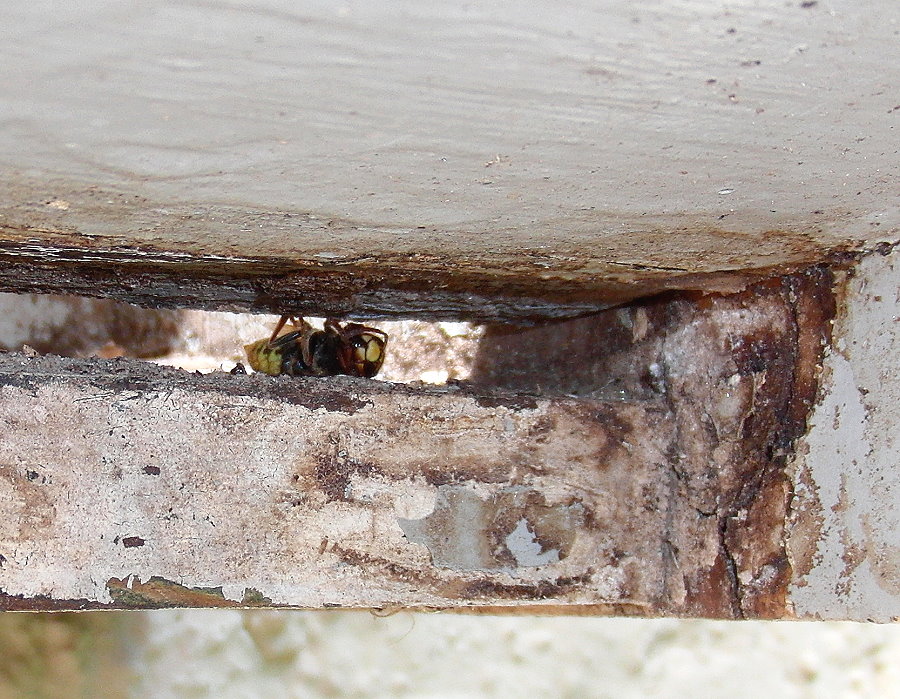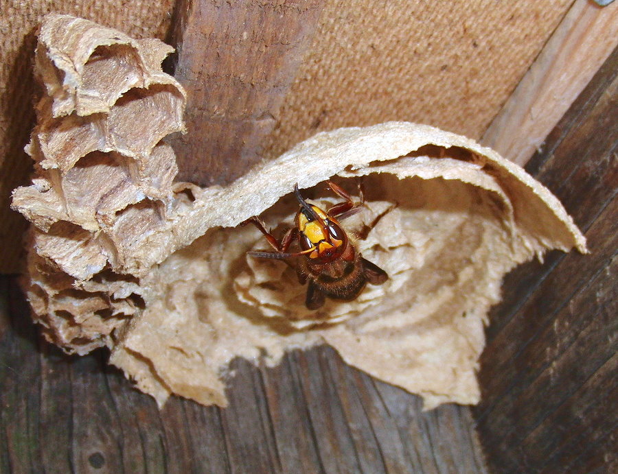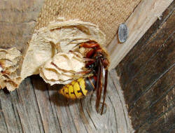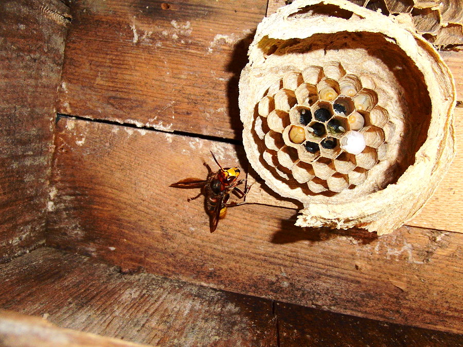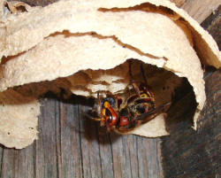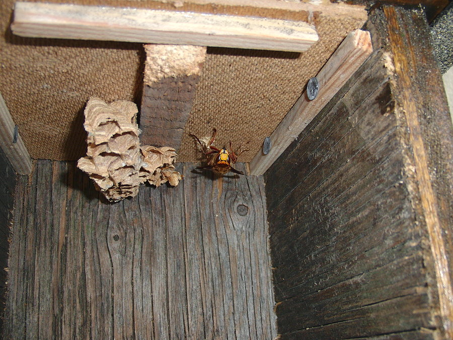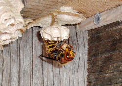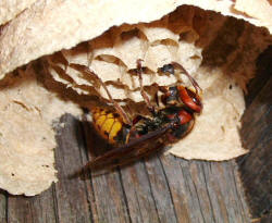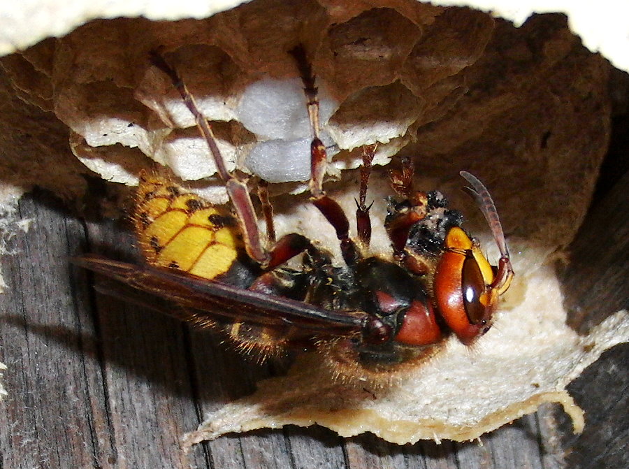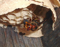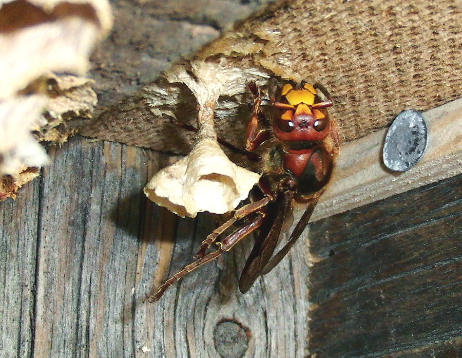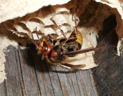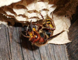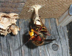 die Hornisse etwas zu groß - eine neue Königin auf dem Nest ...