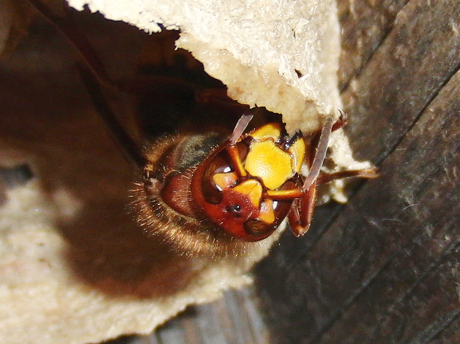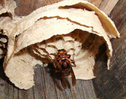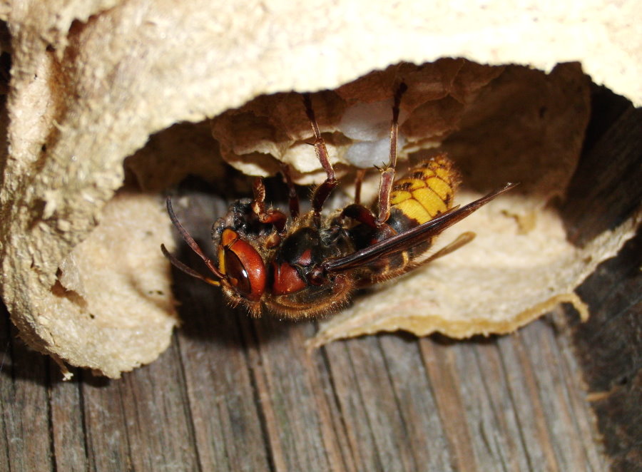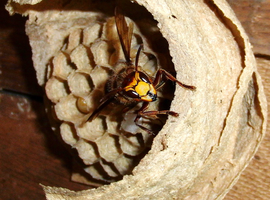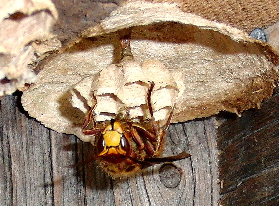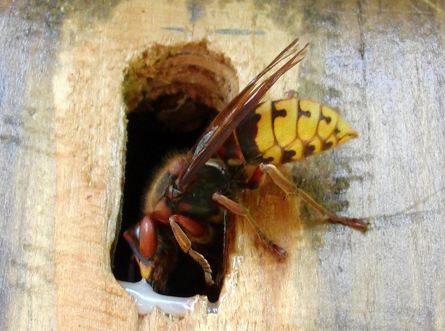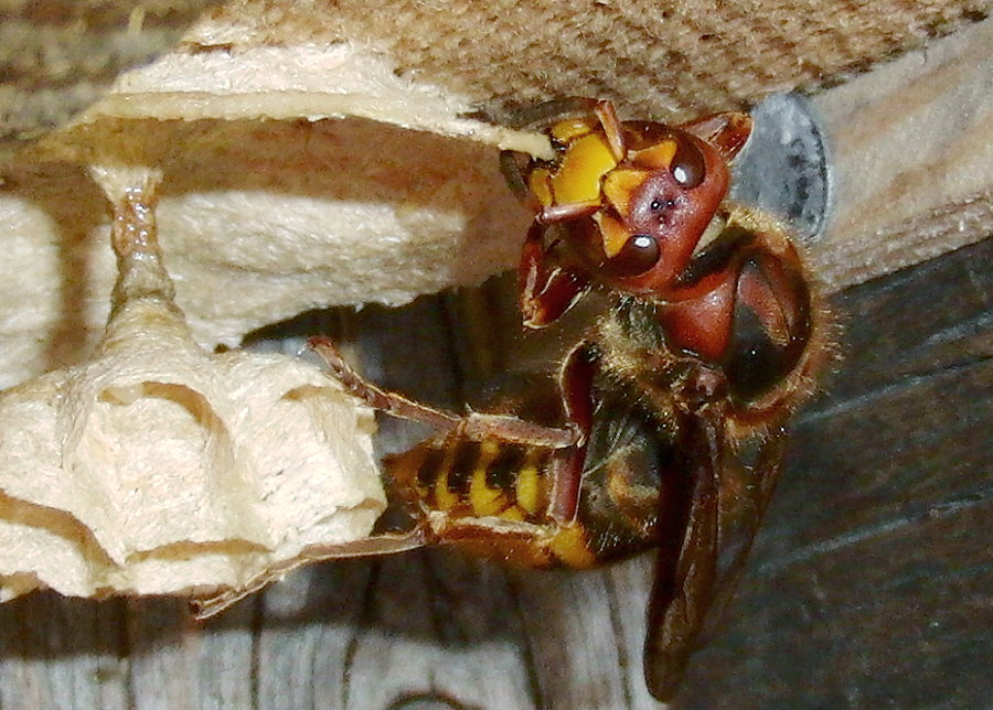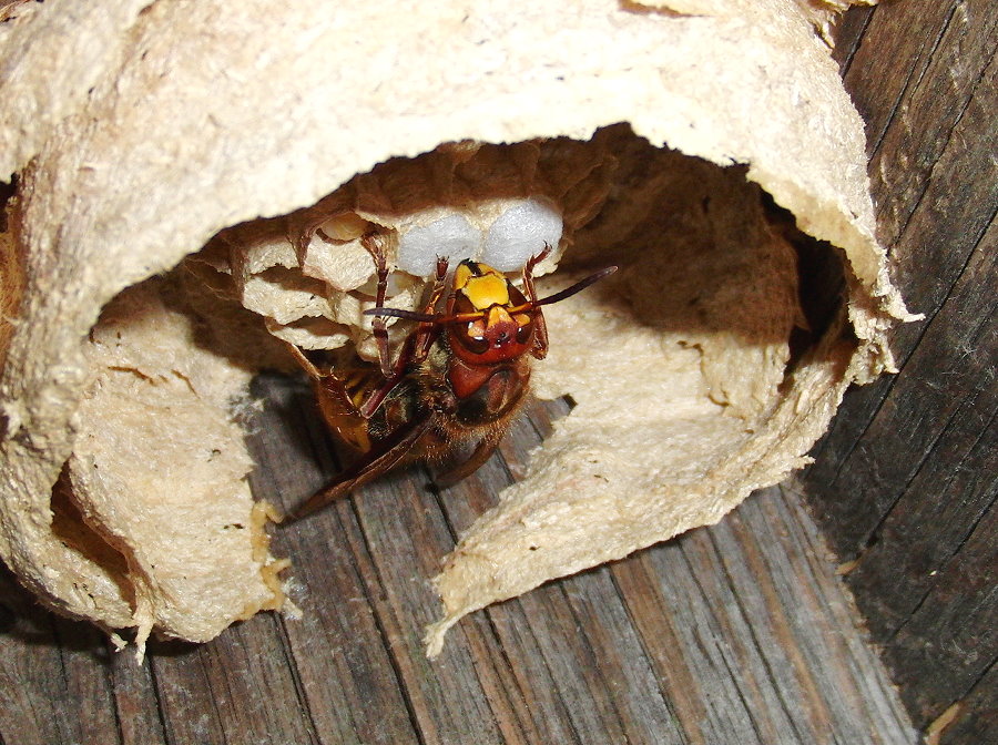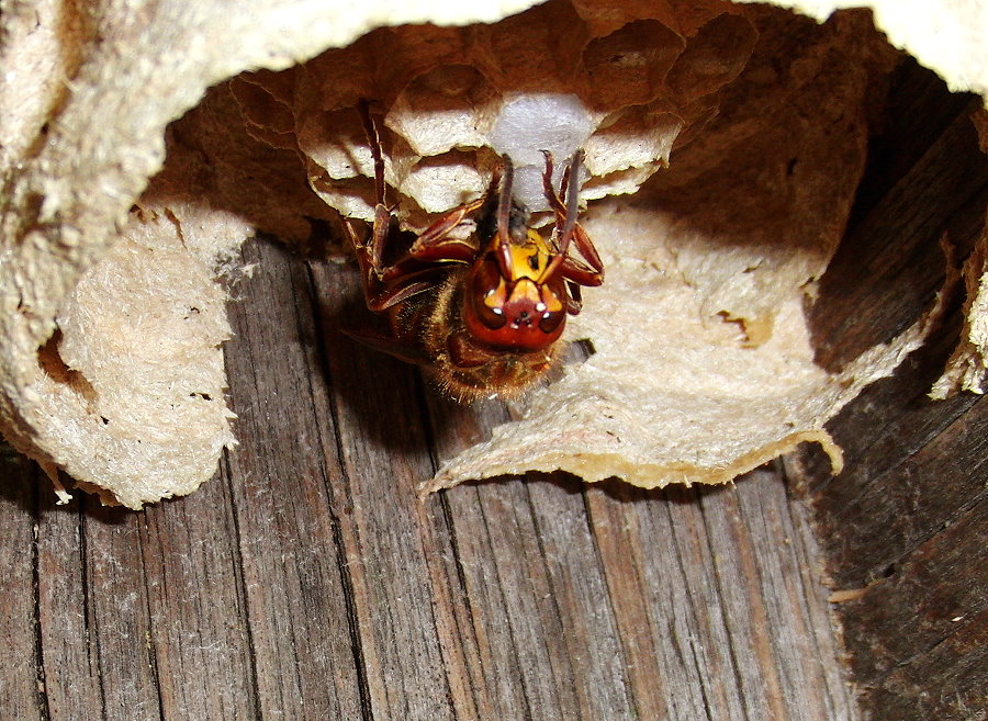 immer wieder die kleine Hornissenarbeiterin auf dem Nest sitzen.