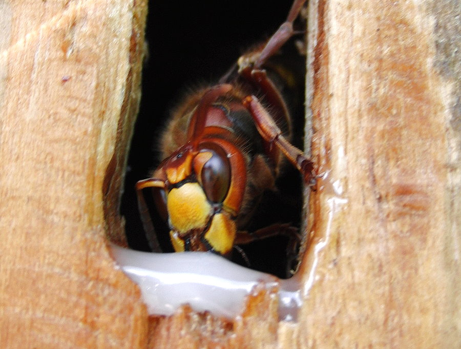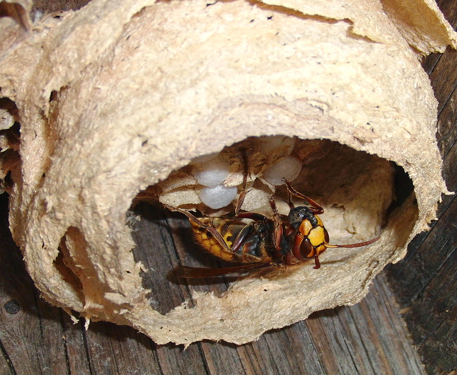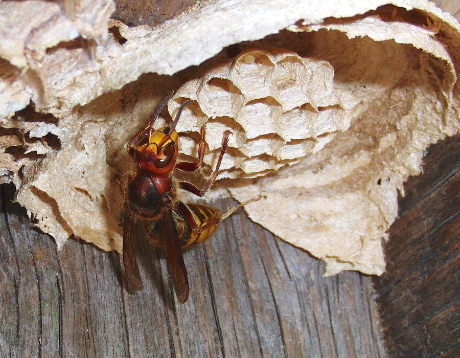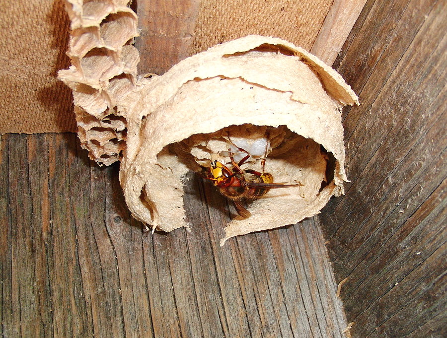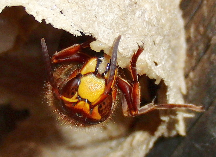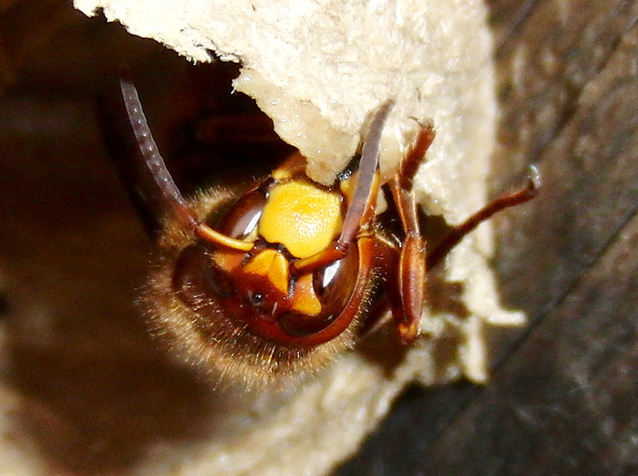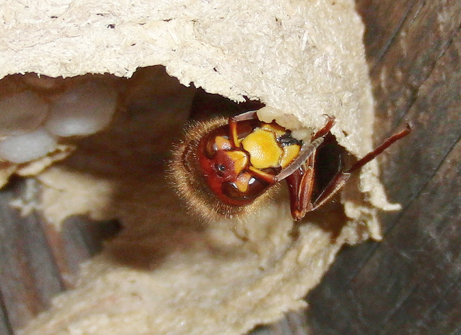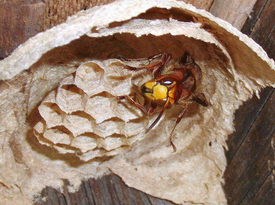 immer wieder die kleine Hornissenarbeiterin auf dem Nest sitzen.