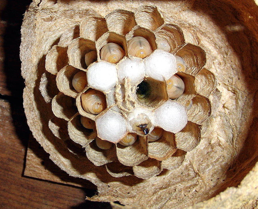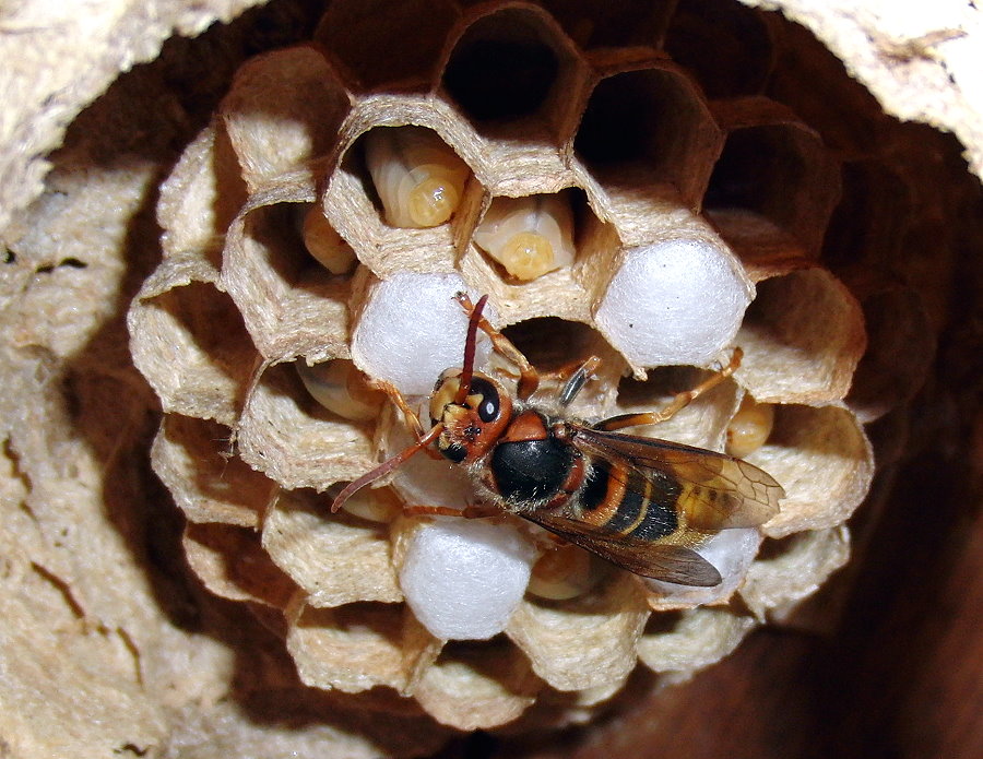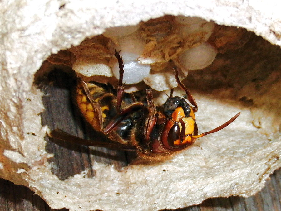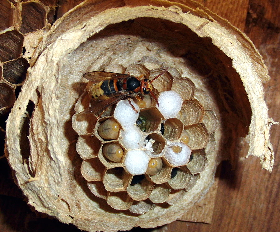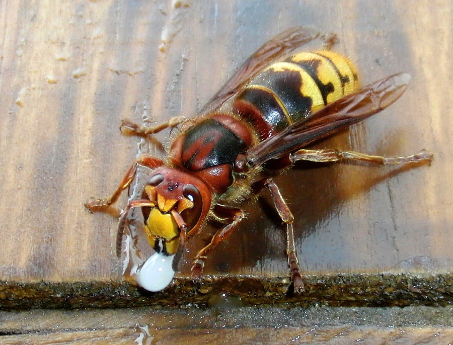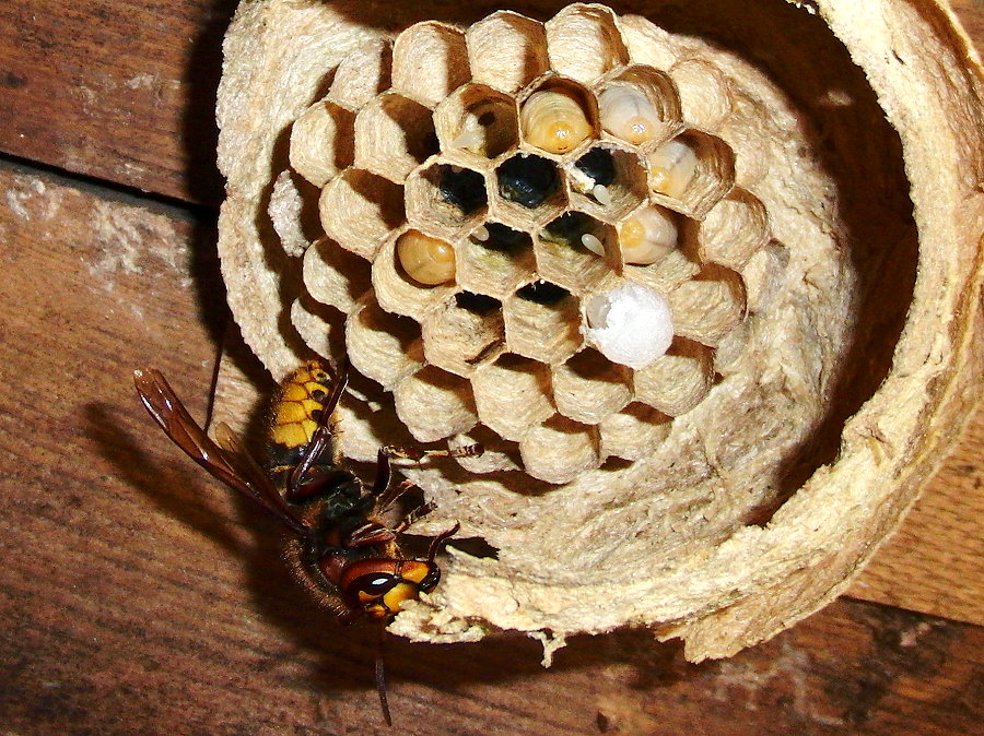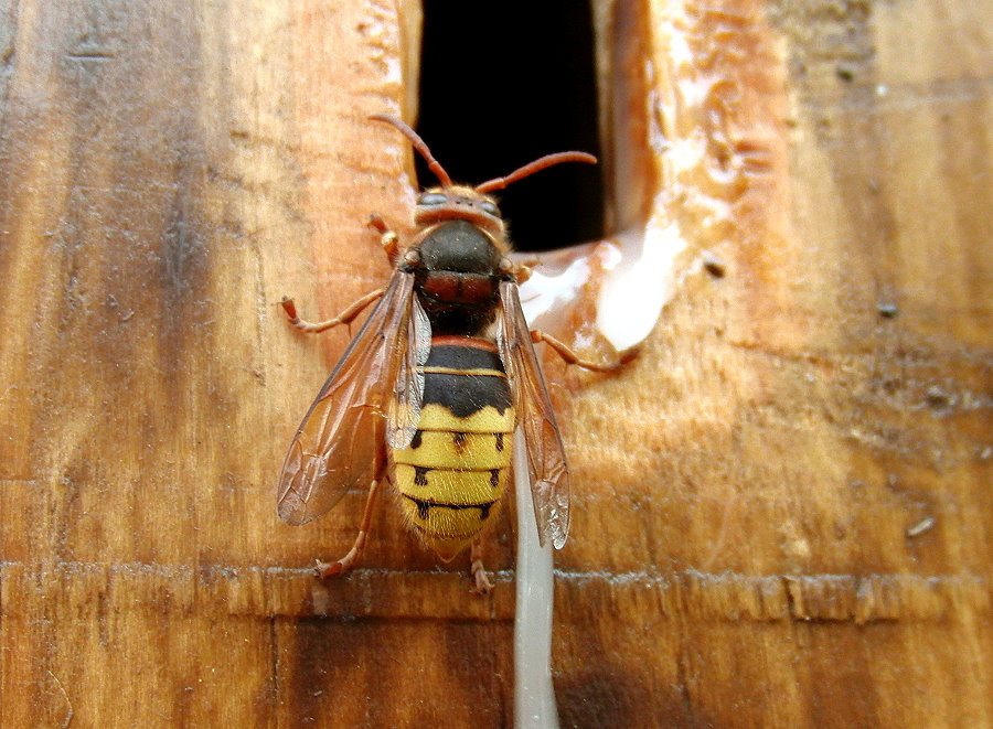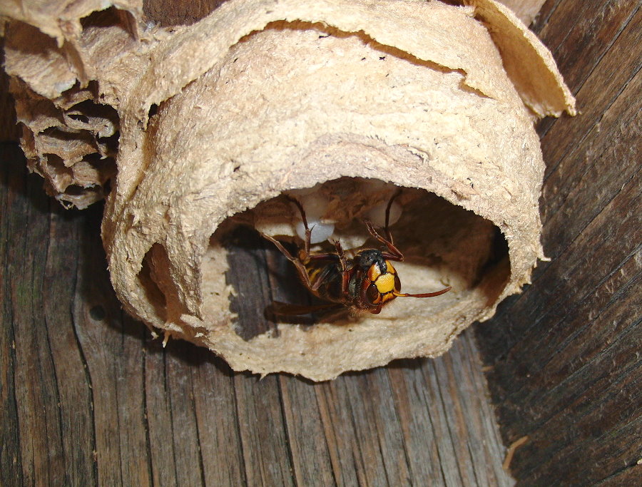 immer wieder die kleine Hornissenarbeiterin auf dem Nest sitzen.