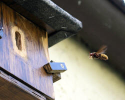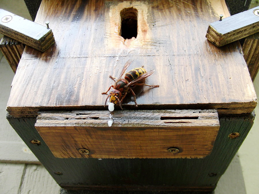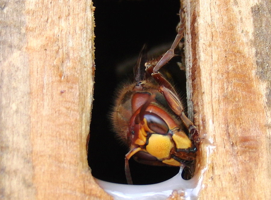 eine Hornissenkönigin in den Kasten schlüpfen sehen. Viel zu wenige