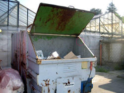 beim Entladen des Containers das Feldwespennest abgerissen wird ...