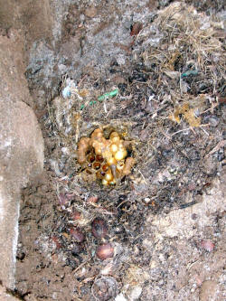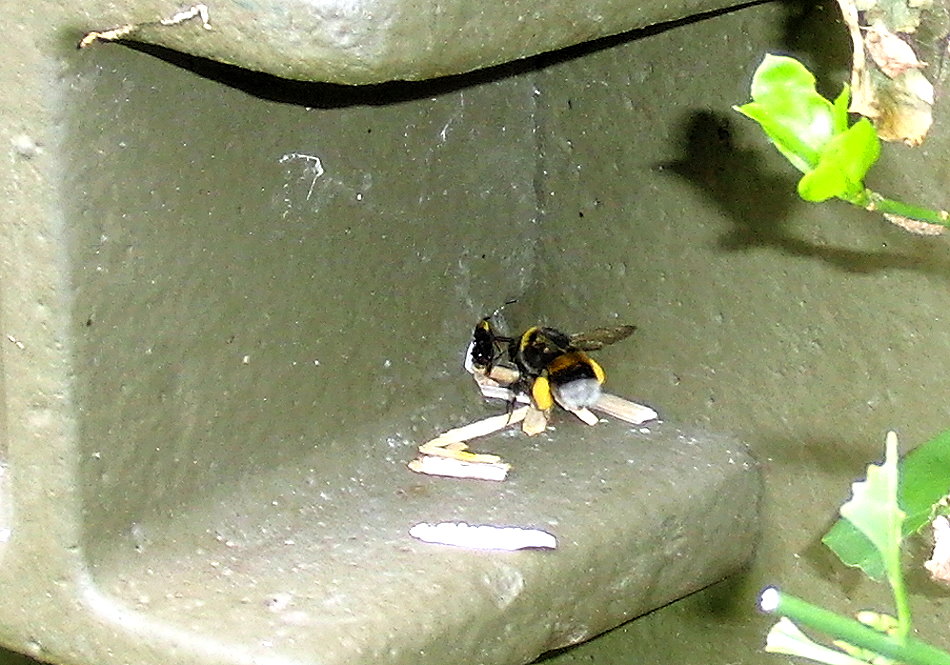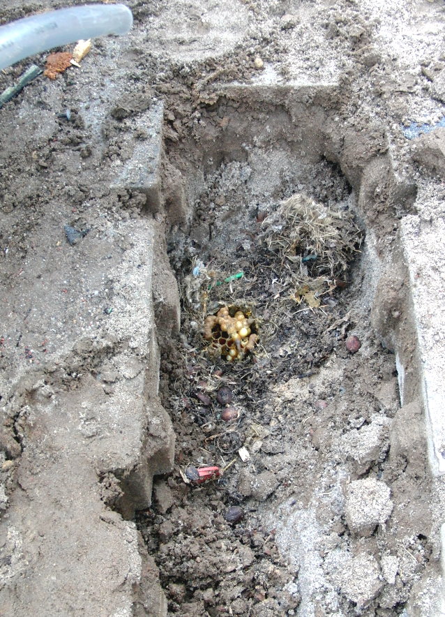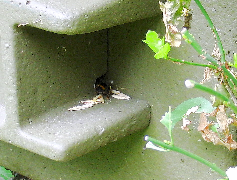 unter Pflastersteinen wurde ein Erdhummelnest entdeckt.