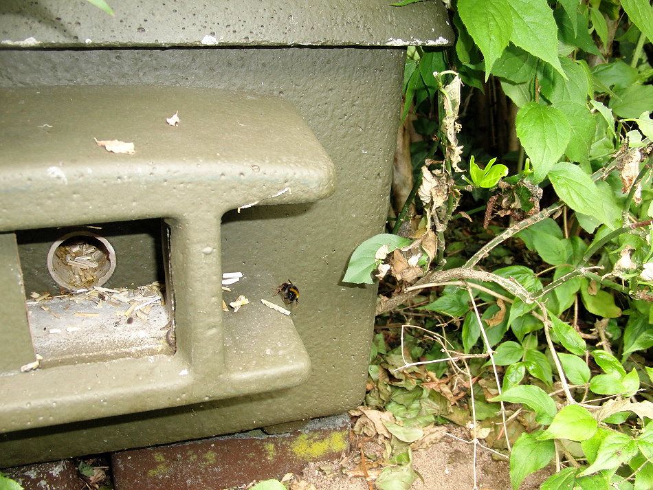 entdecken, die zielstrebig das kleine Eingangsloch am Hummelkasten