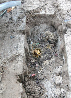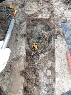 die Pflastersteine rund um das Mäuseloch entfernt.
