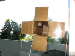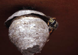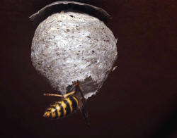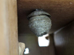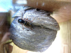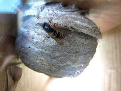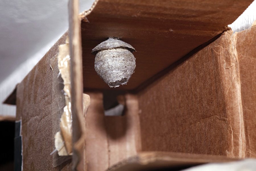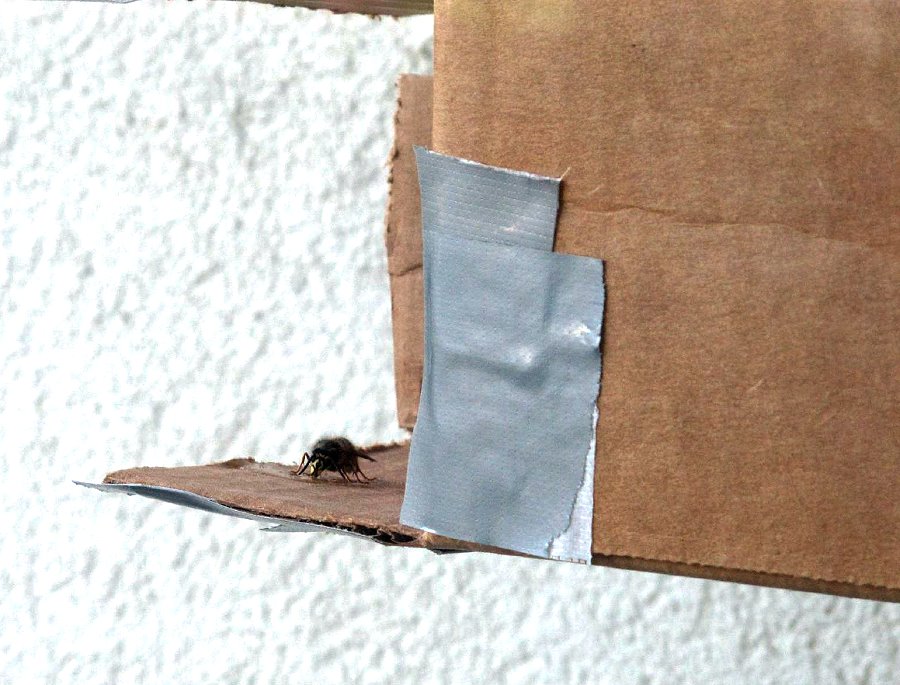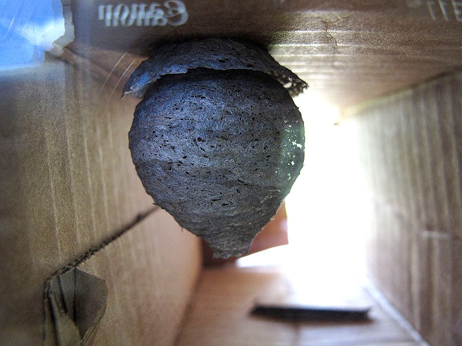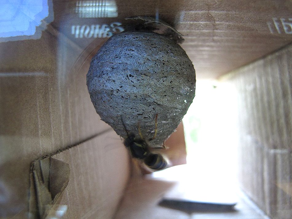 als die Wespe vermeintlich im Karton war, das Nest außen an die